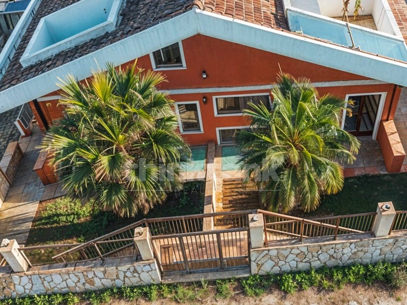 Allesterno, la proprietà dispone di un terreno terrazzato di circa 1200 mq, arricchito da un giardino curato in stile inglese, palme ornamentali, una zona barbecue e una piscina costruita con struttura tradizionale.