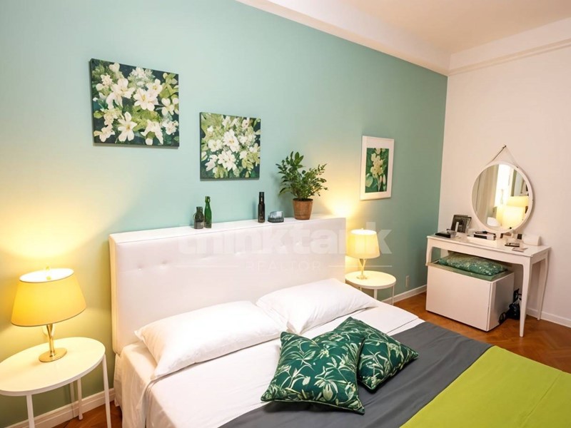 Un ampio appartamento di 220 m², situato al terzo piano, perfettamente organizzato con 5 camere: 3 matrimoniali, 1 tripla, 1 quadrupla, 5 bagni privati ed esposizione privilegiata sia su Piazza Università che su Via Collegiata.