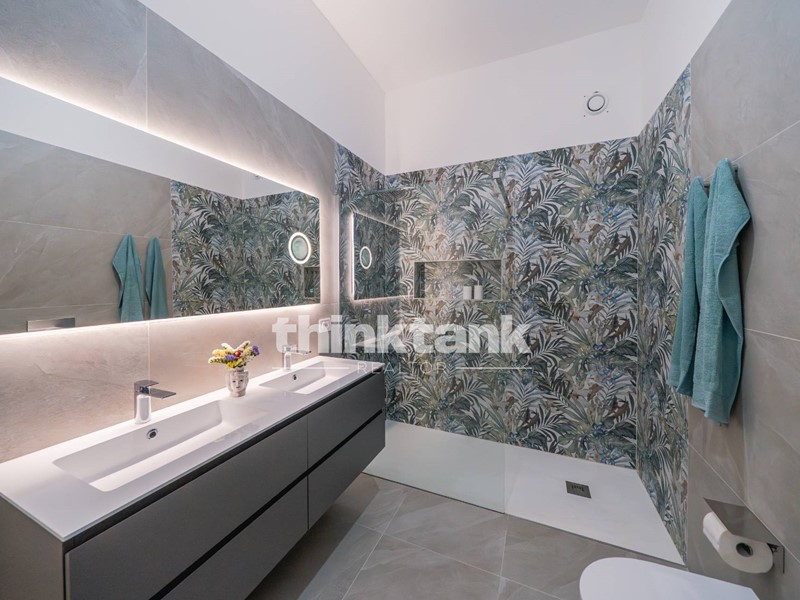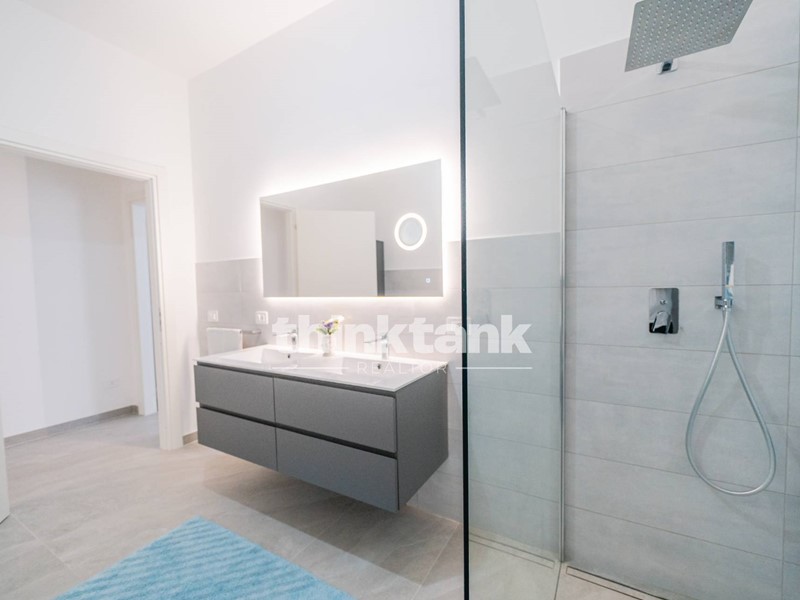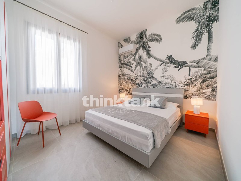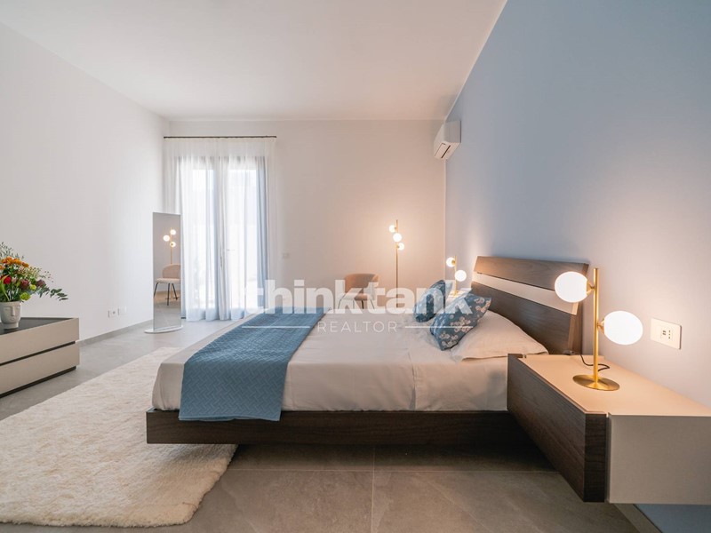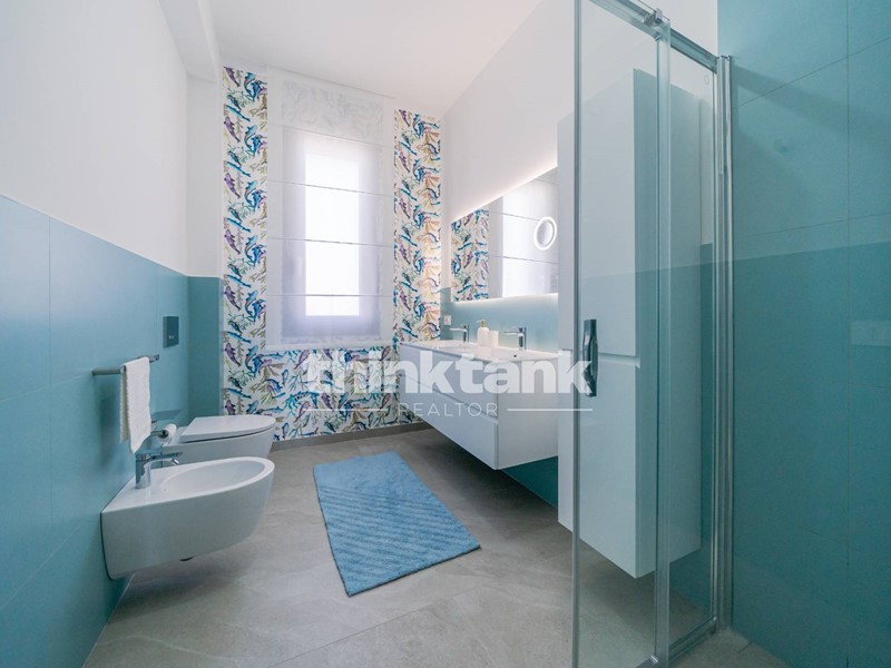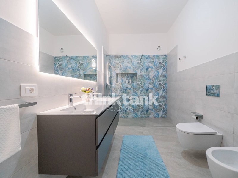 Piano terra: ampio living con cucina abitabile, quattro camere da letto luminose, due bagni moderni, giardino curato, box auto con serranda automatica per due veicoli, cucina esterna, due docce esterne e doppio ingresso (pedonale e carrabile), entrambi automatizzati.