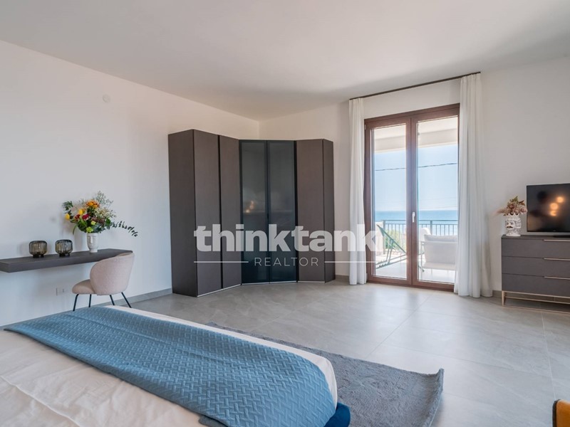 Secondo piano: camera da letto con bagno privato e una terrazza panoramica di grandi dimensioni, con vista spettacolare sul litorale di Avola.