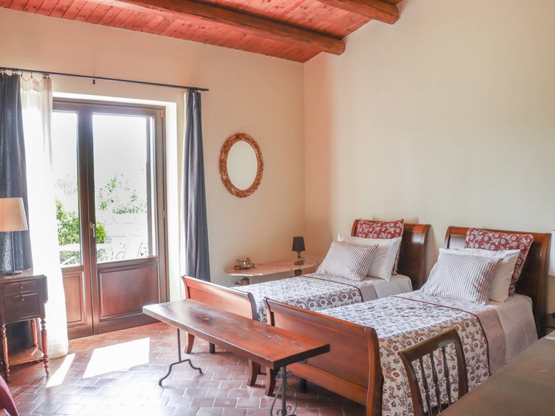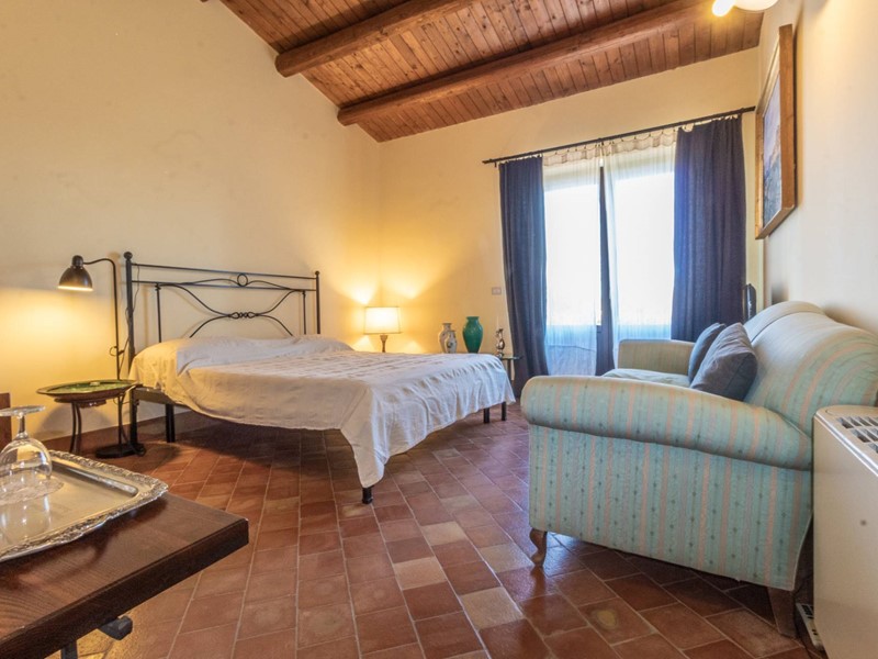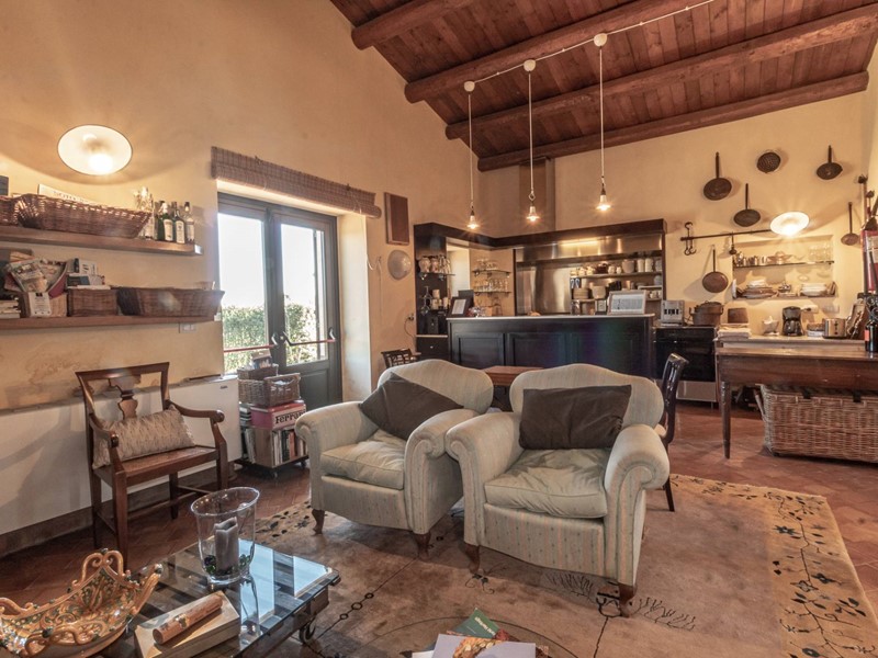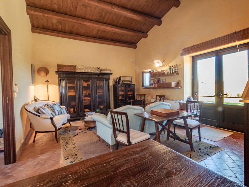 L'immobile è costituito da due corpi adiacenti: uno composto da un appartamento dotato di cucina, soggiorno living soppalcato con camino e veranda vista campagna, un bagno, due ampie stanze ognuna con bagno privato comunicanti al piano soppalcato, caratterizzato da scale a chiocciola e parapetti in ferro battuto (soppalco in legno interamente vivibile che ne raddoppia la superficie). Completano il primo corpo 5 stanze per gli ospiti, ognuna con bagno privato e con accesso indipendente dallesterno più un locale lavanderia;