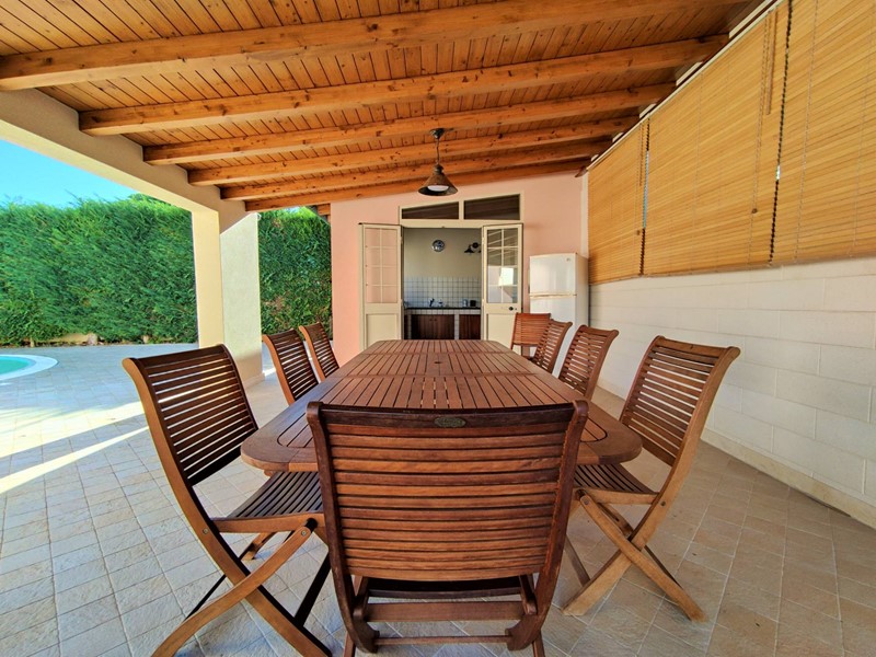Siracusa, Augusta: Proponiamo la vendita di una villa con piscina interamente ristrutturata, all'interno di un piccolo residence sul mare. La villa si presenta in condizioni impeccabili e insiste su un lotto di 1500 mq e si sviluppa su due piani per un totale di 240mq. Al pian terreno troviamo un ampio ingresso, la sala pranzo, la cucina, il salotto, un bagno e la lavanderia. Al piano primo troviamo tre camere da letto una della quali con bagno in camera, unampia zona living ed un altro bagno. Esternamente vi sono ampie verande ed un curato giardino, la piscina con zona prendisole ed una cucina esterna ed un ulteriore bagno esterno comodo anche per gli ospiti. La villa dispone inoltre di un ampio garage.