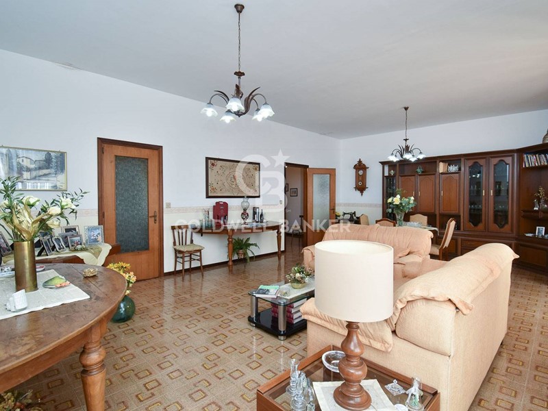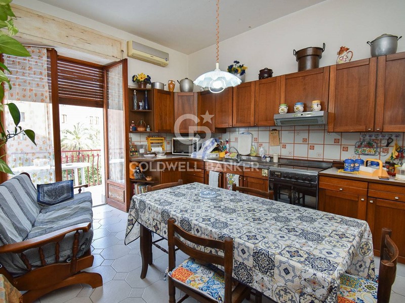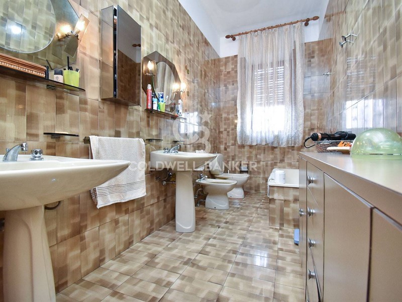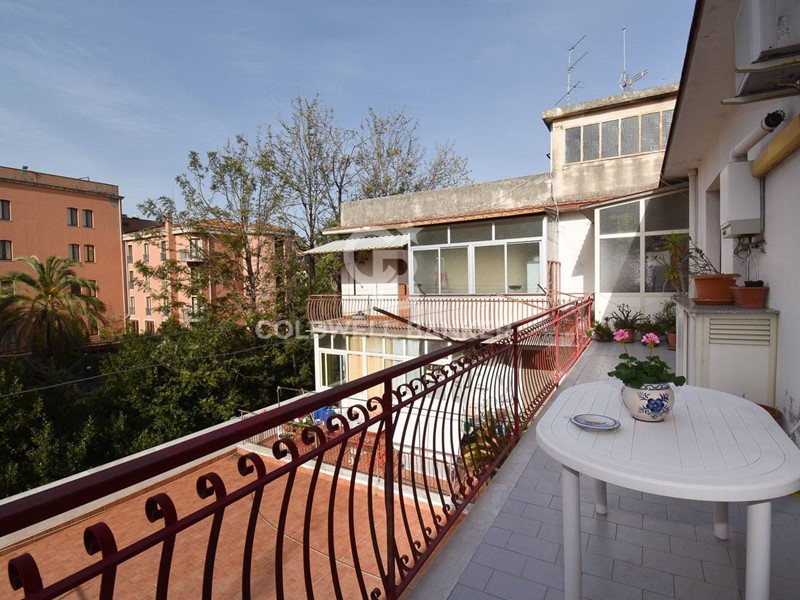 L'appartamento si sviluppa su una superficie complessiva di circa 210 mq ed è composto da cinque ampi vani oltre accessori. L'ingresso al condominio avviene dal civico 115 di via delle Terme, tramite una corsia sia pedonale che carrabile. Dal suggestivo atrio, dove sono presenti archi e volte con quel sapore di un tempo passato, ci incamminiamo verso la scala che ci conduce al piano dell'appartamento. Varcata la soglia d'ingresso ci accomodiamo in una saletta, a sinistra un ampio salone doppio di circa 45 mq, a seguire un corridoio che divide le tre camere da letto, lo studio, il bagno, la lavanderia, ripostiglio e la cucina abitabile. L'immobile gode di una doppia esposizione. L'appartamento, posto nella parte interna dello stabile, mantiene quelle peculiarità di privacy non comuni in un contesto ad alto transito veicolare. Completa la proprietà una terrazza posta al piano superiore che si sviluppa su tutta la superficie dell'appartamento.