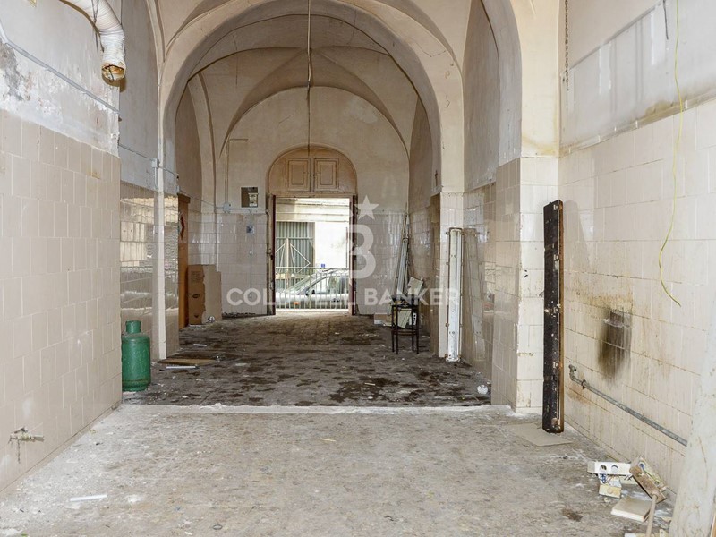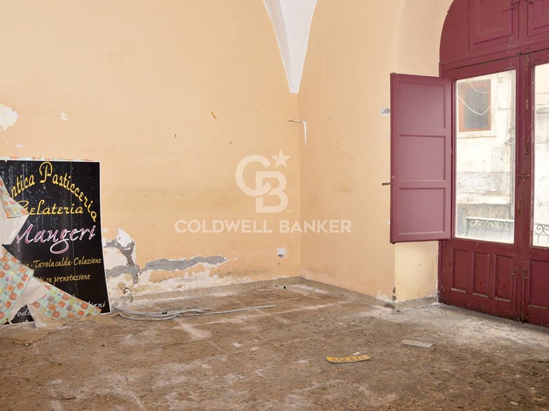 L'immobile si sviluppa su una superficie di 135 mq di cui 96 mq calpestabili, con due ingressi, precisamente, al civico 4 e 5 di piazza Odigitria ed è composto da 2 grandi sale con affaccio diretto sulla strada, piccolo ripostiglio e bagno. E' compreso nell'affitto un piccolo cortile retrostante.