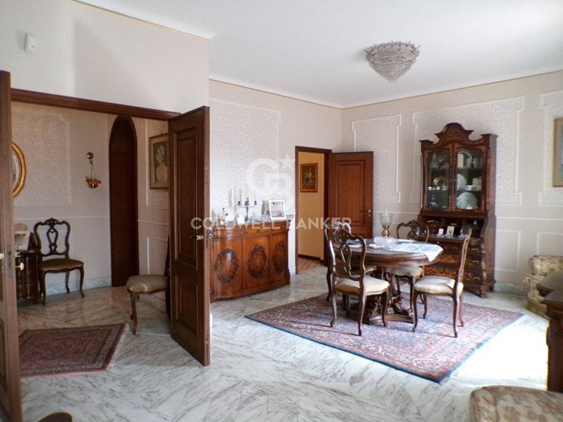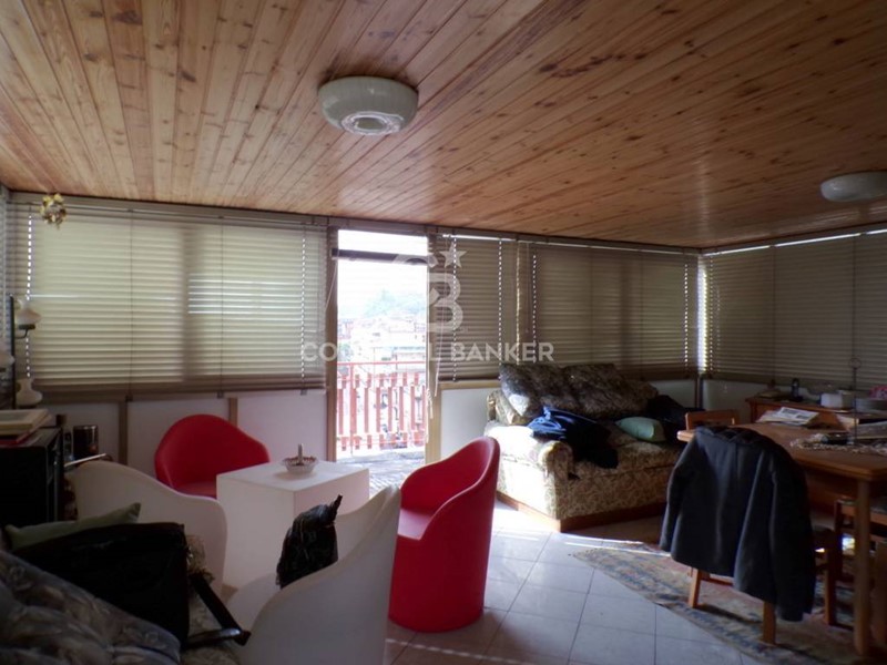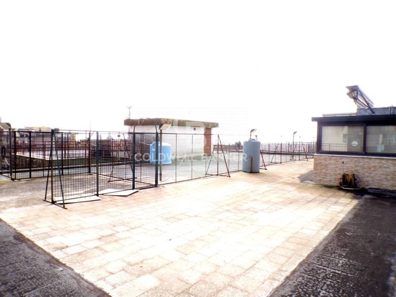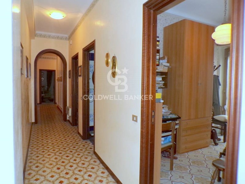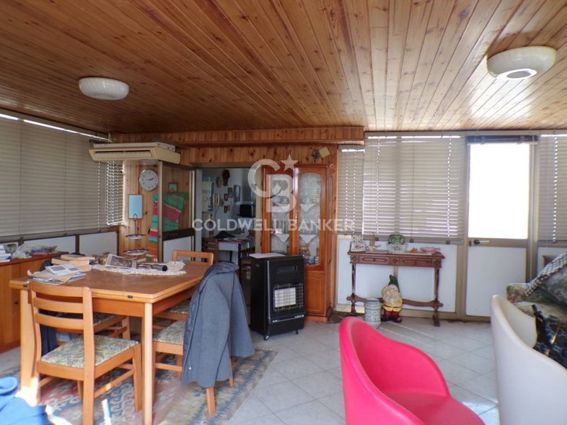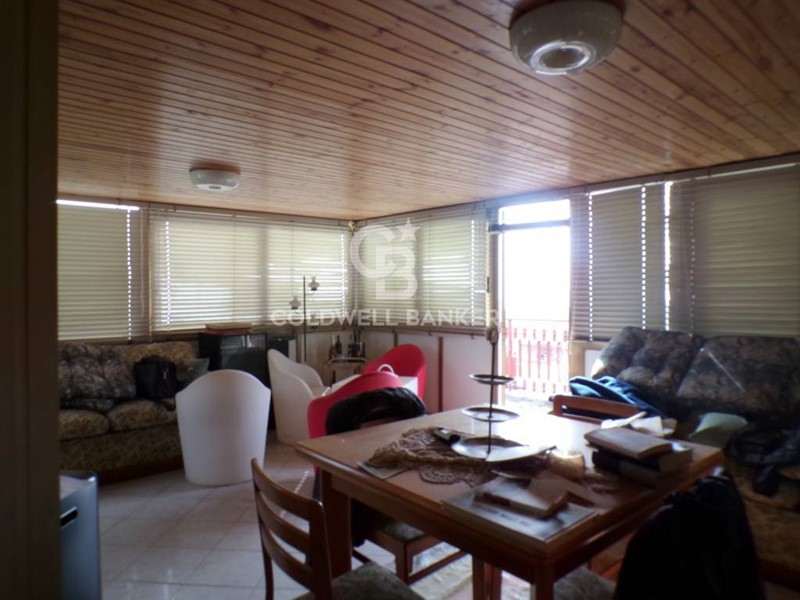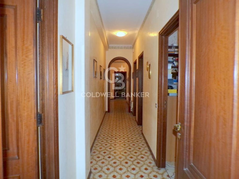 L'appartamento si trova al terzo piano senza ascensore ed è composto da una sala di ingresso che conduce a un doppio salone tramite un'elegante porta in legno, l'affaccio è sulla via principale e gode di una gradevole vista; il lungo corridoio presenta un armadio a muro adiacente all'ampia camera da letto, e conduce ai due servizi, alla seconda camera e al soggiorno ampio che si collega direttamente alla cucina. Tutti gli ambienti sono circondati da un ampio balcone già ristrutturato. Al piano superiore si trova la terrazza di proprietà, della stessa metratura dell'appartamento, dove è stata realizzata una copertura regolarmente catastata, che permette di godere del panorama e di trascorrere momenti di relax, oltre che a poter ospitare amici e familiari offrendo una totale privacy. A completare l'offerta, un garage di 29 mq.