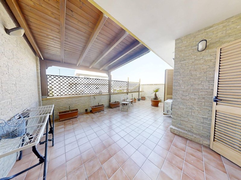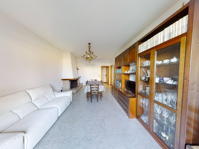La sala da pranzo, anch'essa spaziosa e luminosa, condivide l'accesso alla stessa veranda, rendendola ideale per ospitare amici e familiari in un ambiente accogliente e raffinato.