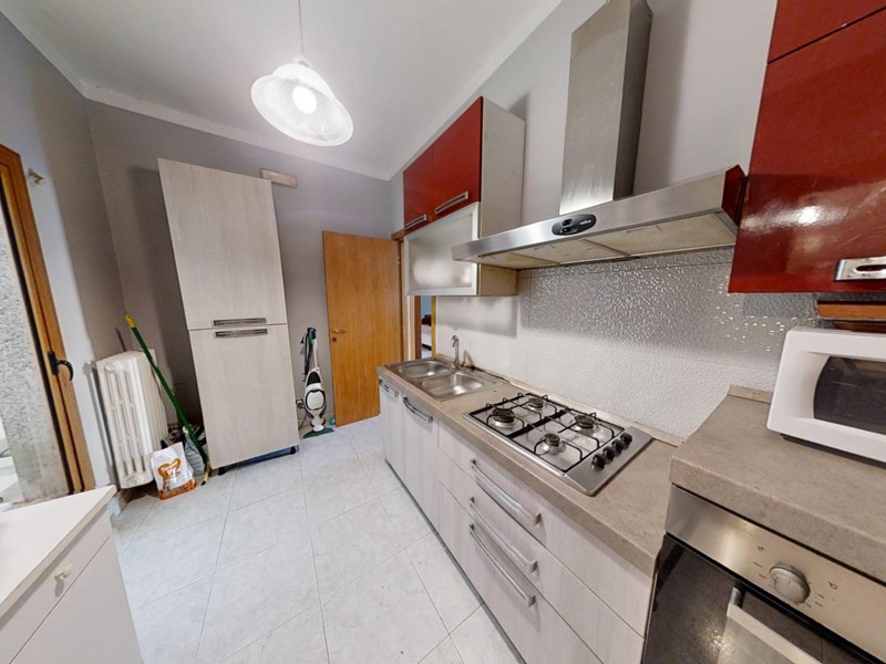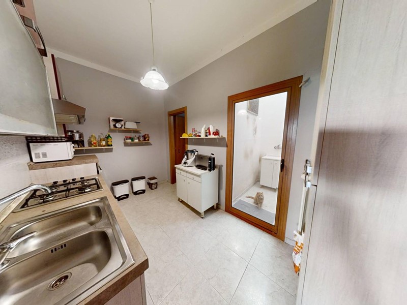 La cucina è funzionale e completamente attrezzata con ogni comfort necessario. Un prezioso pozzo luce illumina la cucina, creando un'atmosfera calda e invitante. Nella zona giorno si trova anche il primo bagno, comodo e facilmente accessibile dalla cucina, dotato di tutti i servizi essenziali per il massimo comfort.