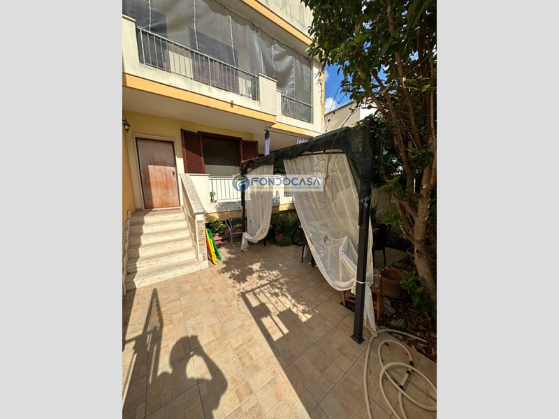 Dalla camera matrimoniale e dalla cucina è possibile accedere al giardino retrostante molto ampio e tutto pavimentato.