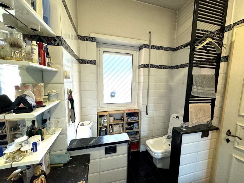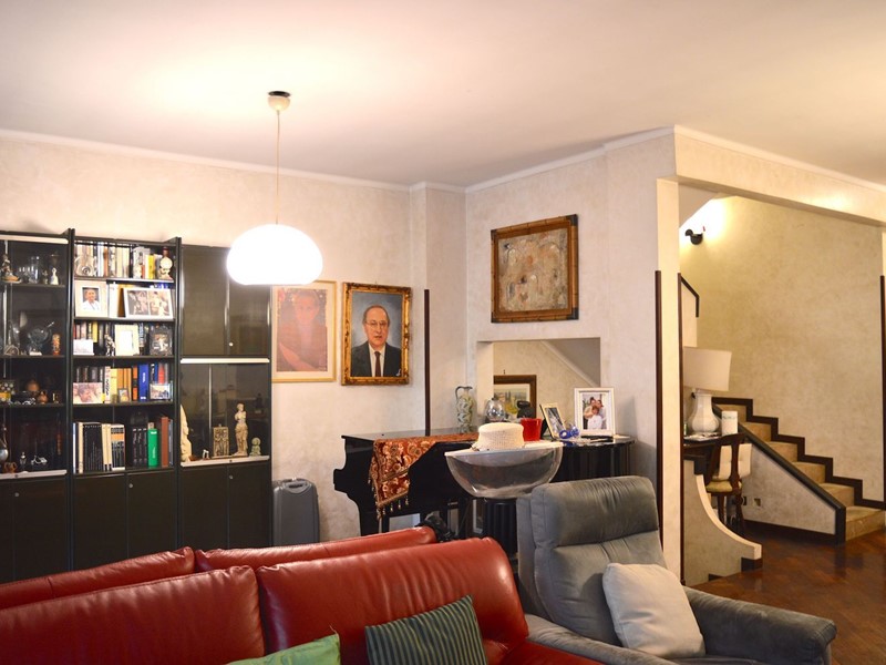 Il P. T. si compone di salone doppio, cucina, ripostiglio e bagno per ospiti. Il salone è ampiamente aperto verso il secondo giardino di 55mq posto a nord della proprietà.