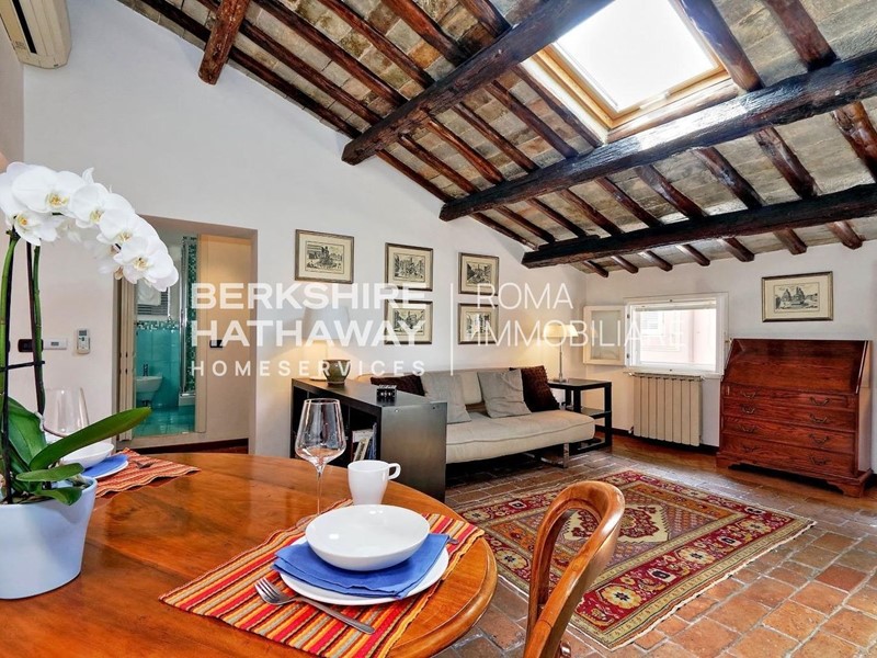 (Centro Storico) MAGNIFICO ULTIMO PIANO con SPLENDIDO TERRAZZINO, SUGGESTIVA VISTA SUI TETTI DI ROMA a due passi da PIAZZA NAVONA, RISTRUTTURATO, LUMINOSO grazie alla DOPPIA ESPOSIZIONE, SOFFITTI ALTI con TRAVI IN LEGNO, composto internamente da ampio soggiorno, cucina abitabile separata, ampia camera matrimoniale, grande servizio finestrato, soffitta e cantina di pertinenza a completare la proprietà. L'immobile si trova in elegante palazzo storico più precisamente a Piazza del Fico, una delle piazze più storiche di Roma, l'architettura circostante presenta un mix di edifici storici, creando un ambiente pittoresco; l'appartamento unico al piano internamente si presenta ristrutturato compresi impianti elettrico e idrico, oltre al magnifico pavimento in cotto e i soffitti con travi in legno. La terrazza, la ristrutturazione interna, la posizione strategica, la luminosità e il taglio dell'immobile che senza dubbio è uno dei più ricercati e rari in centro storico rappresenta senza dubbio una favolosa soluzione per un utilizzo abitativo ma ottima anche come investimento.