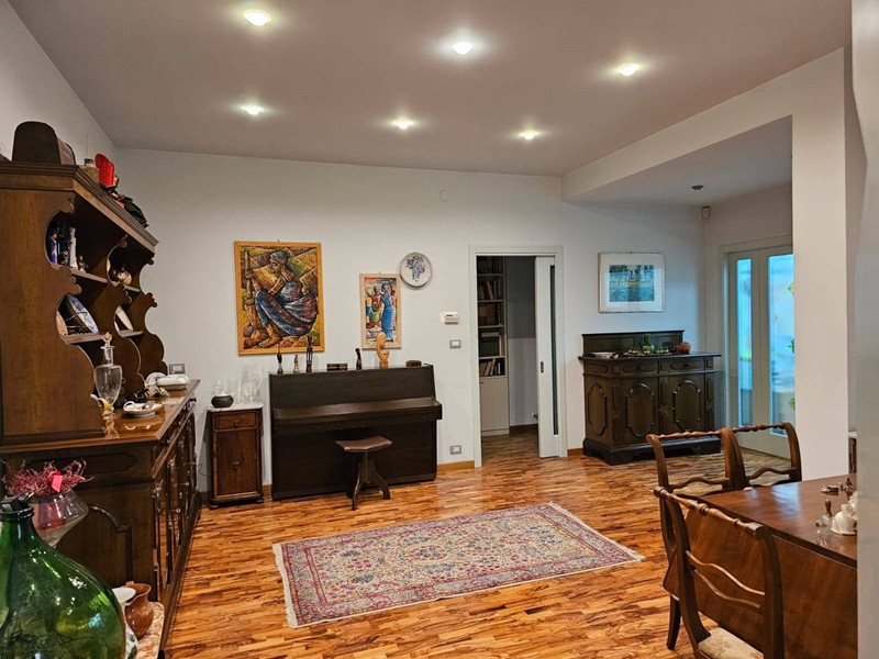 Montegranaro, in posizione centrale e panoramica, appartamento con ingresso indipendente posto all'interno di un villino trifamiliare in corso di ristrutturazione totale con Superbonus 110%. L'immobile, delle dimensioni di circa 240 mq su di un unico livello, risulta composto di ingresso su di un caratteristico soggiorno dotato di camino e soffitto con travi in legno a vista, un ulteriore soggiorno destinato a zona living, una cucina abitabile, 4 camere da letto, due bagni ed uno studio avente ingresso autonomo; completa la proprietà un portico totalmente coperto, un ampia corte perimetrale destinata a giardino comune ed una dependance ad uso ripostiglio. L'appartamento si presenta in buono stato generale, rifinito principalmente con pavimentazione in parquet di ulivo, infissi con doppio vetro, cappotto esterno, impianto fotovoltaico privato, aria condizionata su ogni stanza, caldaia a condensazione ed impiantistica a norma. Localizzato in ottima posizione, a pochi km dal nuovo ospedale di Campiglione di Fermo ed in prossimità dei principali servizi.