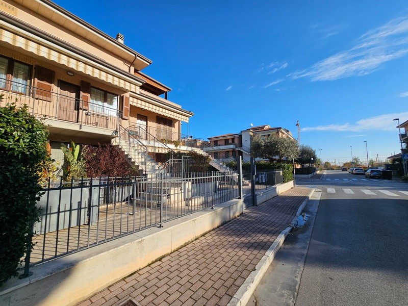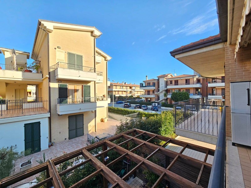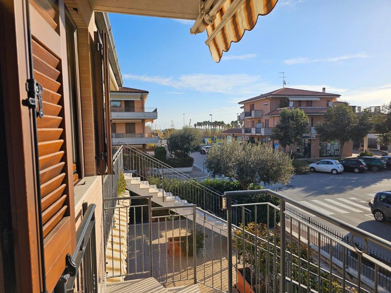 Porto San Giorgio, in ottima posizione ed a pochi passi dal mare, appartamento posto al piano primo con ingresso indipendente delle dimensioni di circa 70 mq composto di ingresso su soggiorno con angolo cottura, una camera da letto matrimoniale, una cameretta, due bagni e due balconi vivibili con vista mare; completa la proprietà un ampio garage delle dimensioni di circa 44 mq con annesso ripostiglio. L'appartamento, di recente costruzione, si presenta in ottime condizioni generali e presenta pavimentazione in monocottura su tutta la superficie, infissi con doppio vetro e persiane in legno, zanzariere alle finestre, aria condizionata, impiantistica autonoma ed a norma di legge. Posto all'interno di una piccolo complesso a schiera localizzato in zona servita ed a poca distanza dal mare.