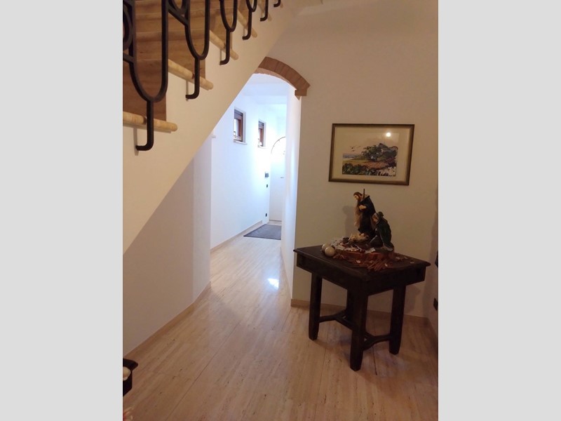 Nel cuore del centro storico di Acquaviva Picena, con splendido panorama sui monti Appennini e sulla costa Picena, abitazione da cielo a terra delle dimensioni di circa 255 mq dislocati su quattro livelli, composti di: piano terra, accessibile attraverso un elegante ingresso con portale in marmo, risulta costituito da un ampio corridoio di ingresso rifinito con pavimentazione in travertino ed da un comodo locale multiuso dotato di camino, lavello e finestra panoramica con vista mare e monti; il piano primo, adibito a reparto notte ed accessibile attraverso una scalinata in muratura rivestita in travertino ascolano, è composto da una camera da letto matrimoniale, una camera doppia, una camera singola, una stanza guardaroba, due bagni, un ripostiglio/scarpiera ed un balcone panoramico; il piano secondo, adibito a reparto giorno e raggiungibile attraverso la prosecuzione della scalinata in muratura, è composto da un ampio salone con camino in marmo e balcone, un bagno rifinito in travertino, una cucina abitabile completa di ripostiglio/dispensa e stufa a legna con ventilazione forzata, una luminosa zona living con un ulteriore camino ed un magnifico terrazzo panoramico assolutamente vivibile e dal quale godere di una vista mozzafiato che spazia dalla costa ai monti Appennini, nonché al centro storico del paese caratterizzato dalla vista della chiesa medioevale e dalla fortezza del XXII secolo; il piano terzo sotto-tetto, accessibile attraverso una scala in ferro con pedata in legno, è composto da un ampio locale multiuso, uno studio panoramico con struttura in legno lamellare ed ampie vetrate su 3 lati, un locale caldaia, un ripostiglio, un locale lavanderia con doccia e predisposizione per servizi igienici ed un ballatoio con armadio su misura. L'abitazione si presenta in ottimo stato generale ed è stata oggetto nel corso del tempo di importanti opere di manutenzione straordinaria mirate al consolidamento strutturale, nonché al rifacimento del tetto e delle facciate esterne. Risulta inoltre dotata di ottime finiture quali pavimentazione in travertino ascolano in tutta la zona giorno, parquet nel reparto notte, impianto di climatizzazione, impianto HiFi e Dolby, impianto di allarme, videocitofono wi-fi, vasca idromassaggio, impianto di riscaldamento sezionato sui piani, ripostiglio con scarpiera meccanizzata rotante, tenda da sole esterna motorizzata ed impianto autoclave con cisterna per accumulo di acqua.