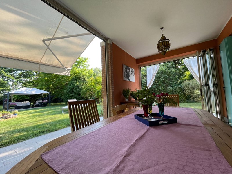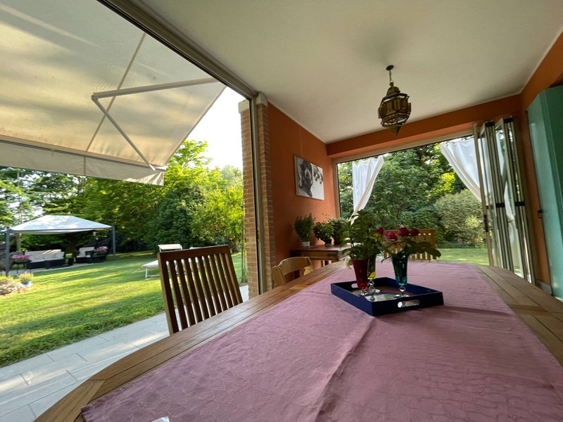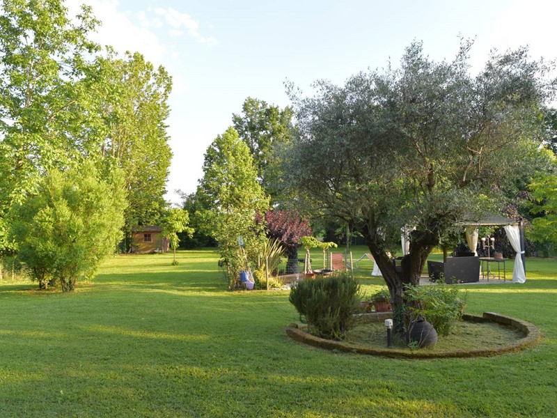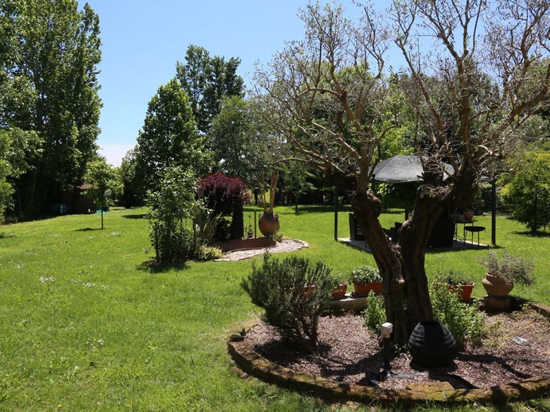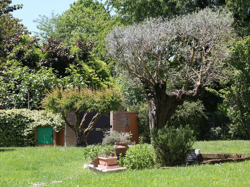 Inoltre nel giardino di circa 3000 mq, ben alberato, è stato ricavato un ricovero coperto per 4 auto e una casetta per gli attrezzi.