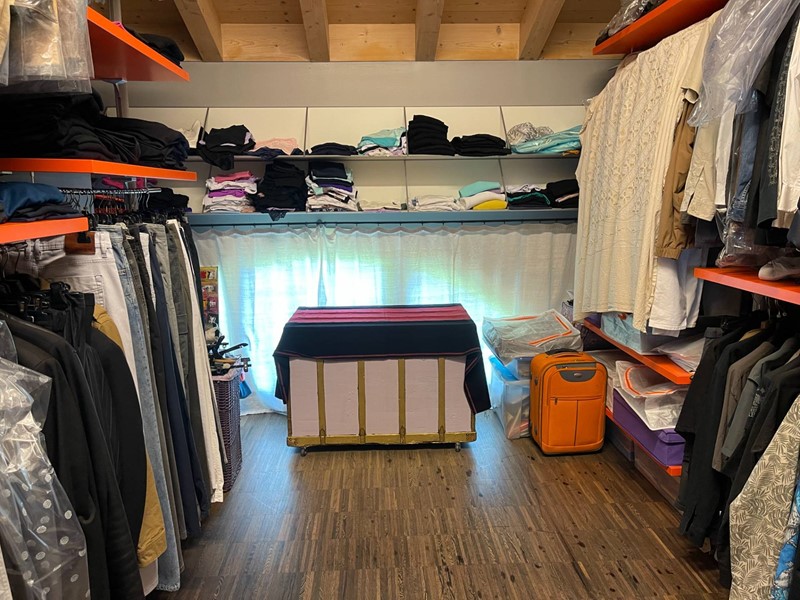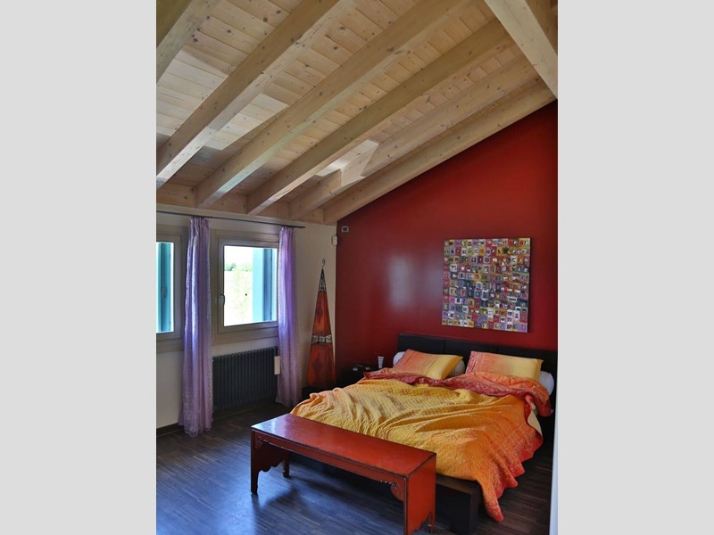 L'immobile è disposto su due piani con travature in legno a vista dappertutto.