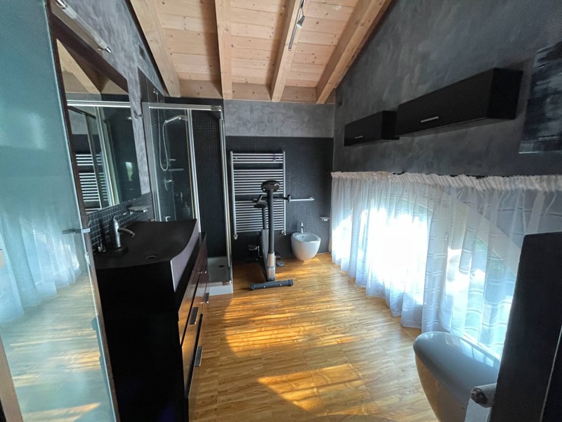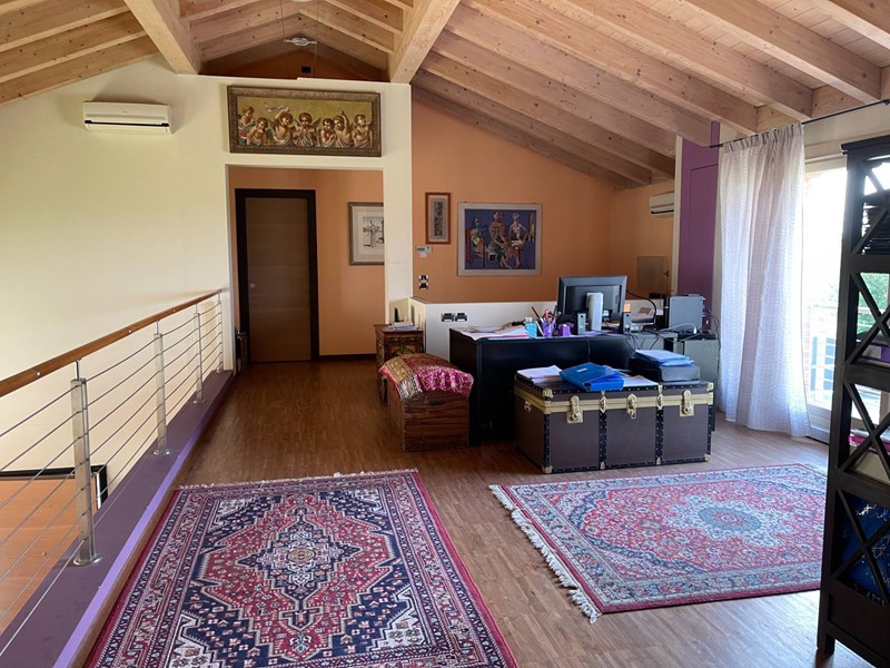 Al primo piano ballatoio sul soggiorno chiudibile, dove si può ricavare un'ulteriore ampia camera, camera matrimoniale padronale con bagno servito di doccia e vasca idromassaggio, stanza armadi, altra camera matrimoniale e camera singola servite da un secondo bagno.