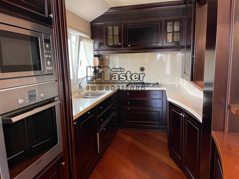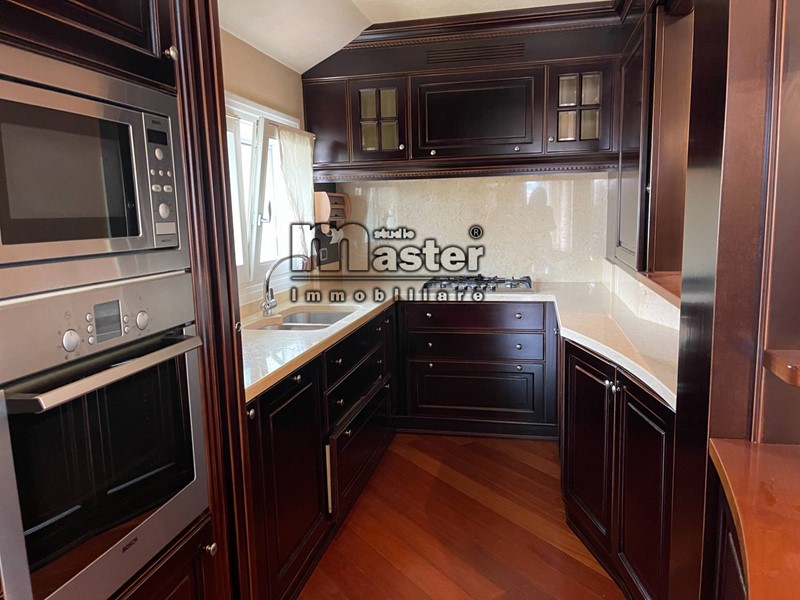 La cucina, permette di accedere ad una terrazza di 50 mq, ideale per godere dei momenti di relax all'aperto. nella zona notte troviamo la camera matrimoniale con cabina armadio e una camera singola e i due bagni.