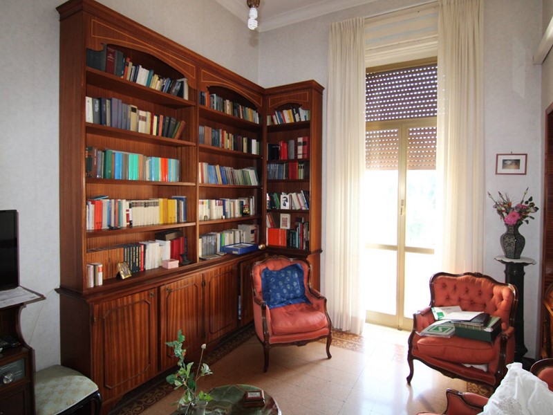 L'appartamento si compone di un ingresso con balcone panoramico, un salone con balcone, tre camere matrimoniali, un salottino con balcone, una cucina abitabile, un cucinotto di servizio con annesso piccolo bagno con vasca.