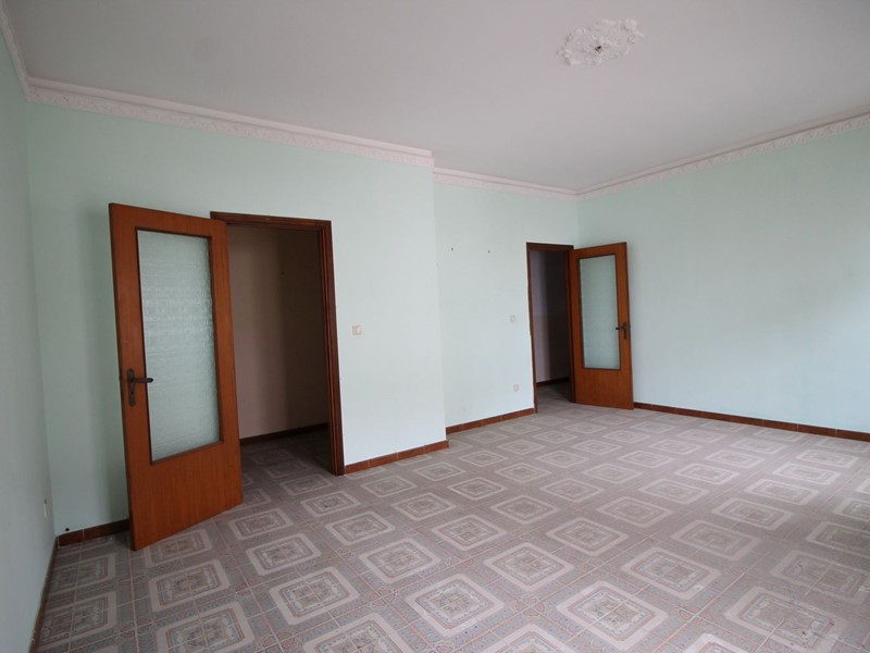 L'immobile si presenta totalmente da ristrutturare, compresi infissi e serramenti ed è composto da ingresso, salone con balcone e finestra, cucina abitabile con balcone, doppio servizio, camera matrimoniale con finestra, bagno e cameretta con balcone. All'interno del condominio recintato c'è il posto macchina non assegnato.