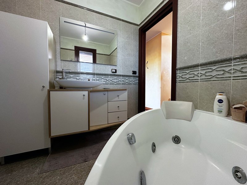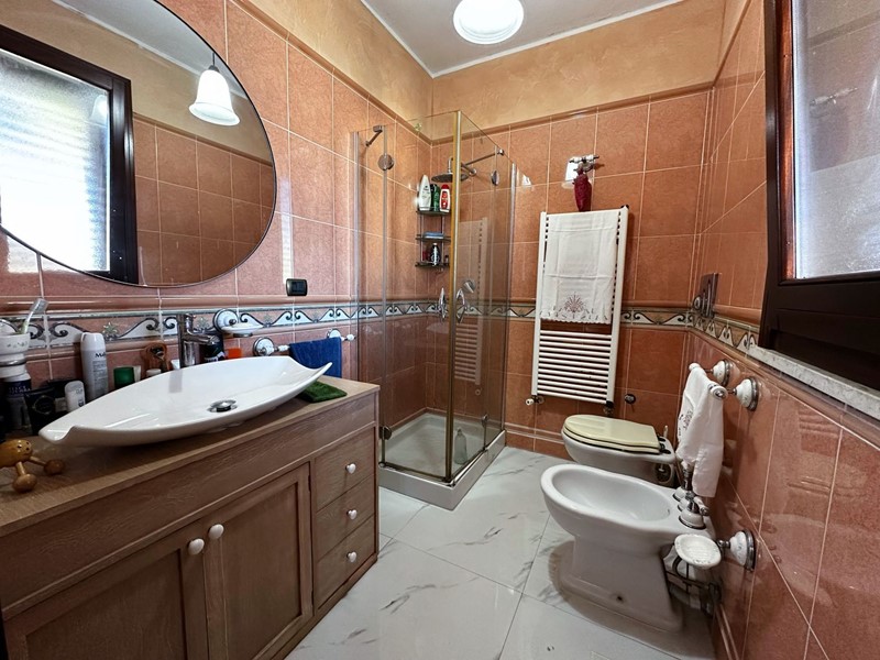 L'imponenza visiva e il fascino di questa dimora si accompagnano alla praticità e alla razionalità della disposizione interna. Al piano terra, abbiamo la zona giorno composta da un ampio salone, la cucina grande e un bagno; al primo piano tre comode camere matrimoniali, la padronale con bagno in camera e il bagno di rappresentanza. Il piano seminterrato è di ca 70 mq. , mentre il terrazzo, di una panoramicità esclusiva, è di mq. 30 ca. Tutti gli ambienti godono di grandi balconi, per un totale di mq. 75 ca. La villa è dotata di impianto di allarme, impianto di climatizzazione caldo e freddo. Ti aspettiamo per ammirare dal vivo, in modo completo la bellezza di questa residenza.