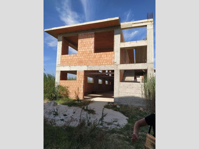 La proprietà si estende su un lotto di circa 17.000 mq e comprende una struttura principale di circa 240 mq, distribuita su due livelli, con progetto già approvato. Attualmente la casa si presenta tamponata e tramezzata, pronta per essere completata e personalizzata secondo le esigenze del futuro proprietario.