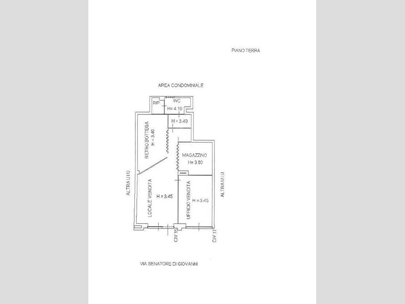 L'immobile, categoria catastale C/1, è in buone condizioni e si compone di due vani con due luci su strada e un servizio.