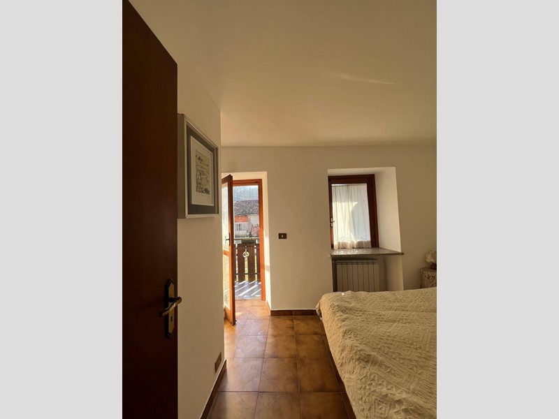 Una bella scala in legno conduce al piano primo, dove troviamo due luminose camere da letto, un secondo bagno e un grazioso balcone con affaccio sulla corte interna, da cui si gode di una spettacolare vista sulle Alpi.