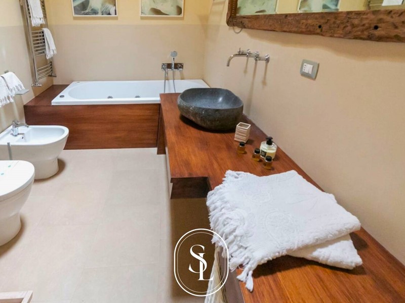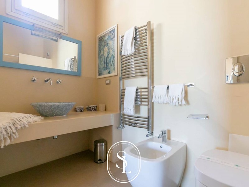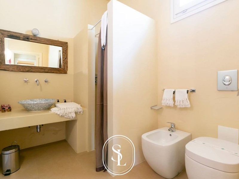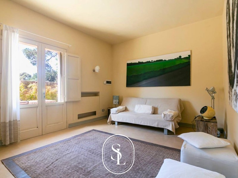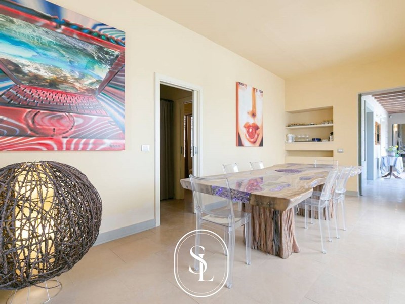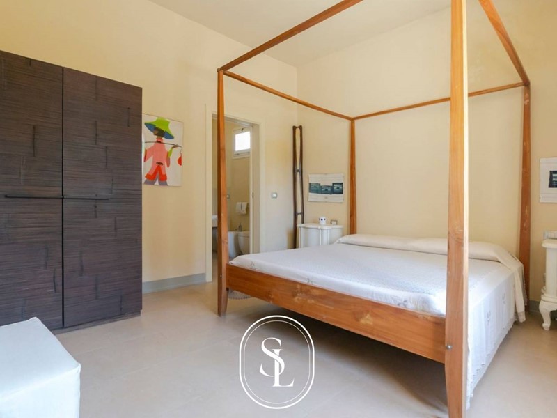 La villa si sviluppa interamente su un unico piano ed è attualmente suddivisa in due unità abitative indipendenti, una soluzione ideale per chi desidera privacy e versatilità. Lappartamento principale offre una luminosa zona living open space con ampie vetrate affacciate sulla piscina, una cucina separata e un bagno di servizio. La zona notte comprende tre eleganti suite matrimoniali, tutte con bagno privato e accesso esterno, tra cui la camera padronale con doppio accesso, alla piscina e alla corte privata, e un bagno en-suite con doccia e vasca idromassaggio. Il secondo appartamento dispone di un soggiorno con cucina separata e lucernario, una camera matrimoniale, un bagno e un accesso diretto alla corte, perfetto per ospiti o uso indipendente.