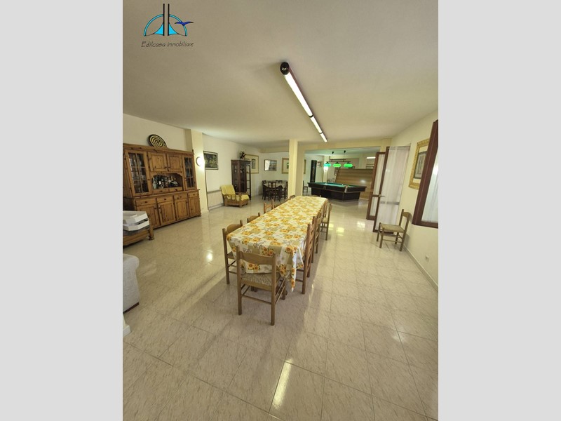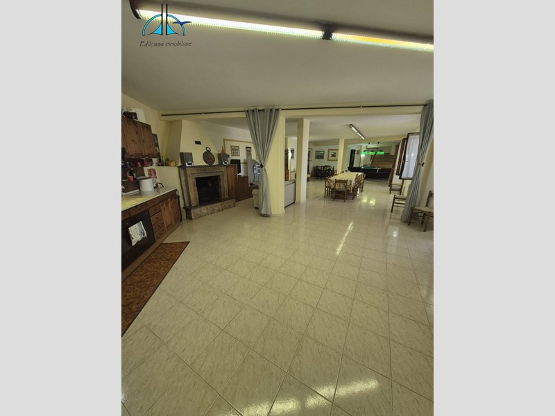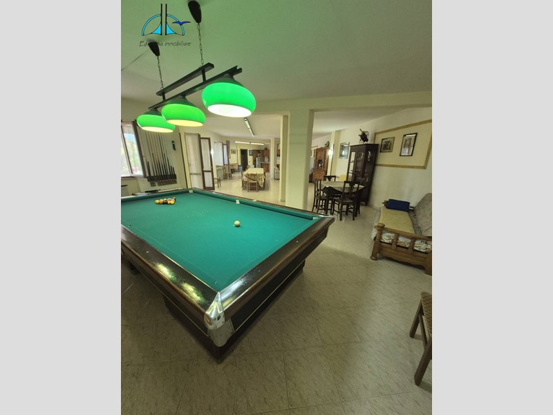 L'immobile al piano terra è composto da enorme salone con cucina a vista e camino, camera, bagno, sala da biliardo ed altro ambiente con tavolo da ping pong.