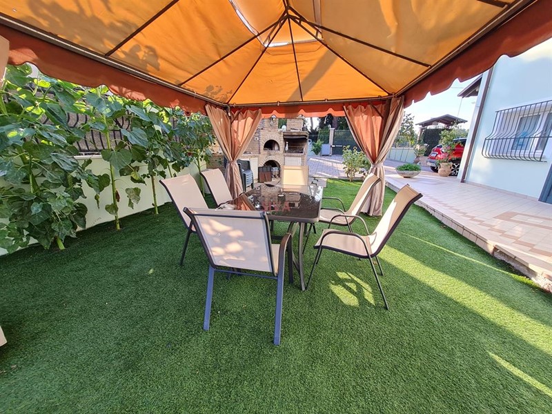 PONTE NUOVOBella casa singola su ampio lotto di circa 600 mq completamente ristrutturata con grande cura nel 2014. La corte esterna è ben organizzata e divisa in zona parcheggio, area barbecue per pranzi all'aperto e area riservata con splendida piscina. Al momento al piano terra troviamo un appartamento indipendente con soggiorno angolo cottura, disimpegno, due ampie camere un bagno finestrato e ripostiglio. Secondo appartamento con ingresso indipendente al piano terra e sviluppato tutto al 1°piano composto da soggiorno, cucina aperta, ampio bagno e 2 camere matrimoniali, 2 balconi e ripostiglio esterno. I due appartamenti sono unibili facilmente per ricavare un'unica abitazione con zona giorno al PT e zona notta al 1P. In corpo staccato bel servizio molto rifinito composto da ampia taverna, bagno e due vani. L'immobile è dotato di cappotto da 10 cm, tetto rifatto nel 2012 con coibentazione, zanzariere ovunque, infissi in pvc con vetrocamera e persiane in alluminio, condizionatori ovunque, impianto di allarme e impianti certificati.