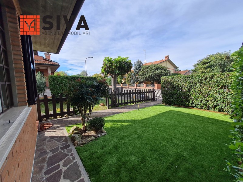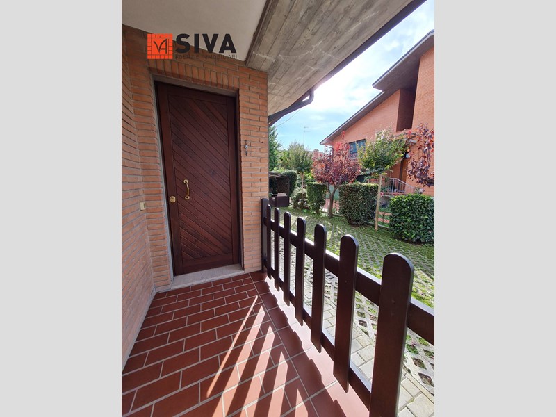 In prestigiosa zona residenziale caratterizzata da ampi spazi verdi e ville, casa abbinata ad un lato pronta da abitare e così composta: al piano terra ingresso, soggiorno, cucina abitabile, bagno finestrato e comodo spazio multifunzionale (lavanderia/taverna) dotato di vetrata affacciata su portico esterno.