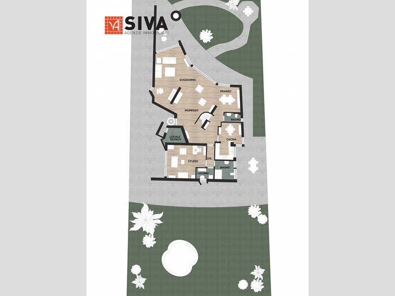 San Biagio villa anni 70 con le caratteristiche architettoniche tipiche di quegli anni, gli ambienti hanno altezze diverse e ampie finestre nella zona giorno che la rendono particolarmente luminosa.