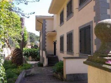 Villa signorile situata in una zona residenziale caratterizzata da palazzine di lusso con ottime rifiniture. Il fabbricato presenta una forma rettangolare con i lati corti esposti est/ovest ed i lati lunghi con orientamento nord/sud. Gli accessi principali sono due, uno pedonale ed uno carrabile. Il corpo di fabbrica si sviluppa su due piani fuori terra, un piano parzialmente interrato, un locale sottotetto ed una autorimessa nel seminterrato. Il piano terra è composto da ingresso, ampio salone con camino in marmo, sala pranzo, cucina e bagni. Inoltre al piano terreno abbiamo un terrazzo che si affaccia verso il giardino. Al piano superiore vi sono cinque camere, quattro bagni, una terrazza. Il piano seminterrato è composto da una grande sala adibita a sala hobby, un soggiorno, una sala pranzo, una cucina, e servizio. Dalla cucina al piano terra è possibile raggiungere il piano inferiore attraverso una scala secondaria realizzata in ferro battuto e gradini in vetro. Il piano seminterrato è composto da quattro locali, una cucina di servizio e servizi. Inoltre allo stesso piano si trova l'autorimessa alla quale si accede con porta basculante automatica in metallo. Completa la proprietà il giardino di mq 700.