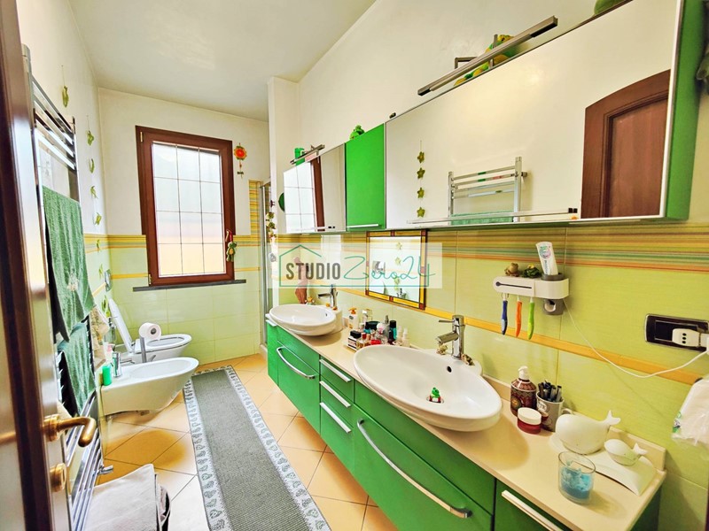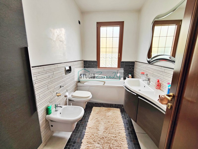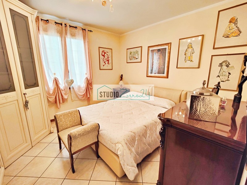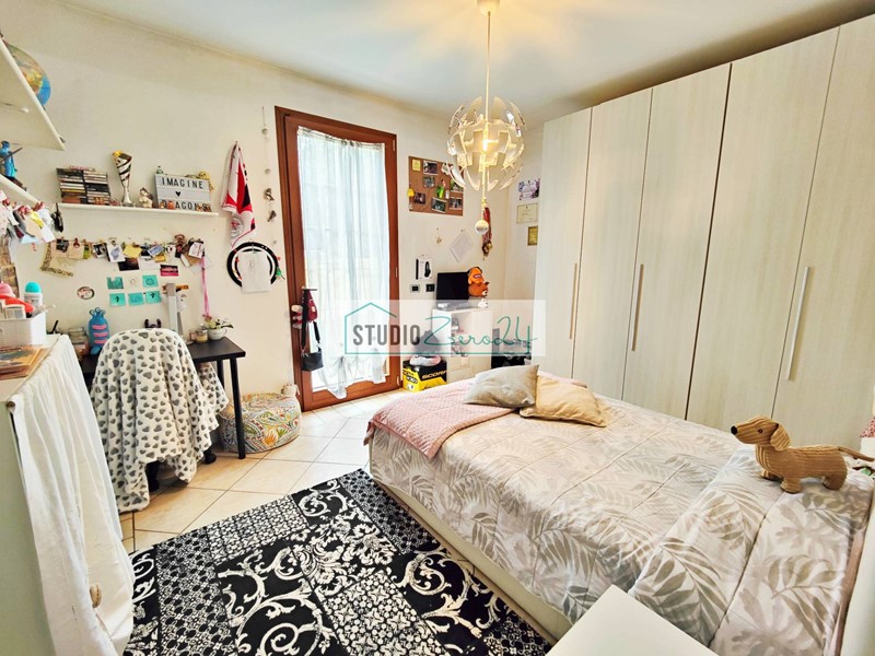La zona notte offre tre luminose camere da letto tutte matrimoniali di cui una dotata di uscita diretta in giardino. I servizi sono due, uno con doccia e uno con vasca. Un ampio ripostiglio adibito a cabina armadi completa il piano terra.