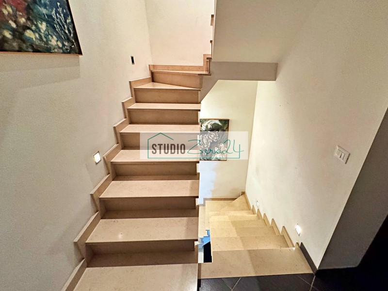La proprietà è così composta: Al piano terra troviamo un luminoso soggiorno, cucina a vista con veranda dove passare piacevoli serate estive, una camera media, una zona lavanderia e un bagno. Al primo piano troviamo ben due camere da letto di cui una con balcone, una zona comfort e un bagno. Completa la proprietà il seminterrato luminoso e ben arredato con una spaziosa zona giorno, una camera matrimoniale, e un bagno.
