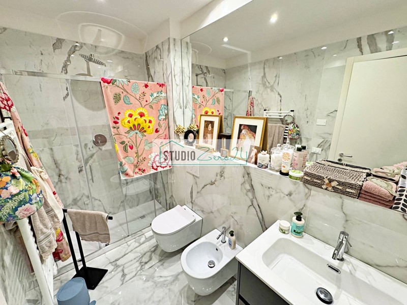 La proprietà è così composta: entrando, ci accoglie una luminosa ed ampia zona giorno con cucina a vista, proseguendo incontriamo una camera matrimoniale con bagno en suite, una seconda camera matrimoniale, un ripostiglio adibito a zona lavanderia e un secondo bagno con doccia.