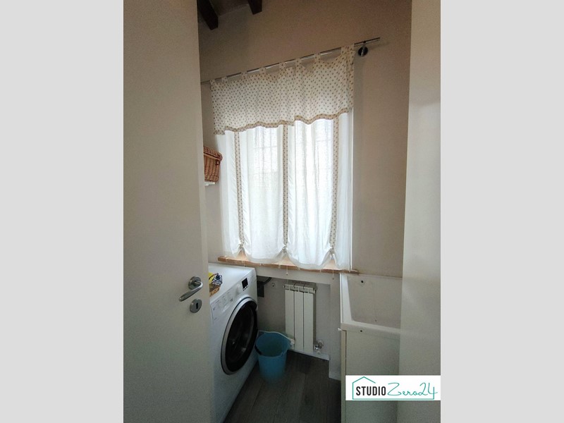 Ampio soggiorno con camino, cucina, due camere (di cui una con bagno privato), un bagno aggiuntivo, ripostiglio/armadio e lavanderia.