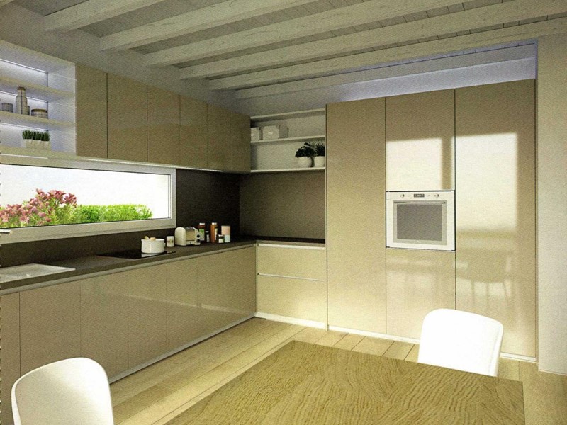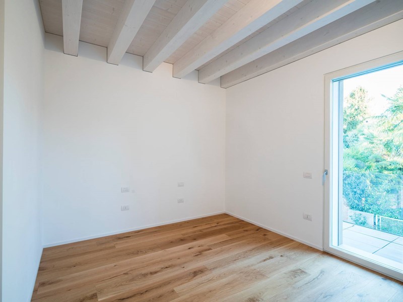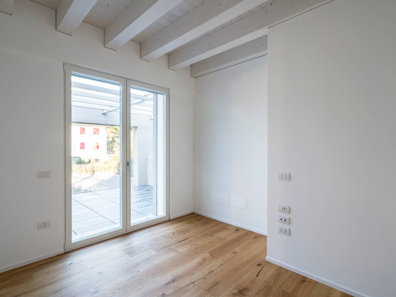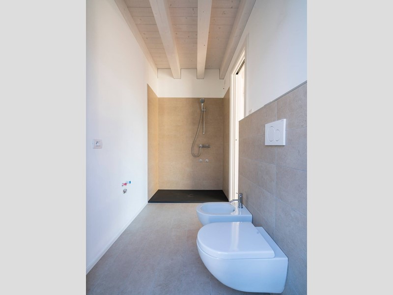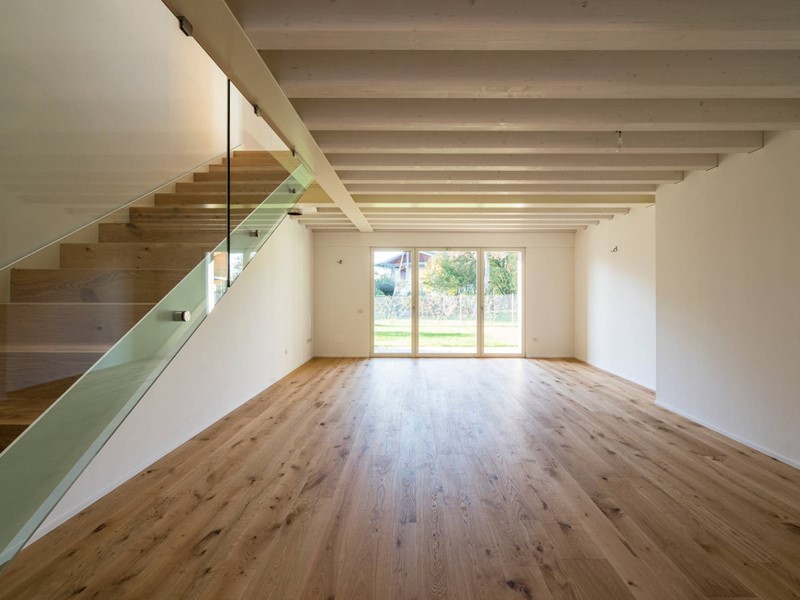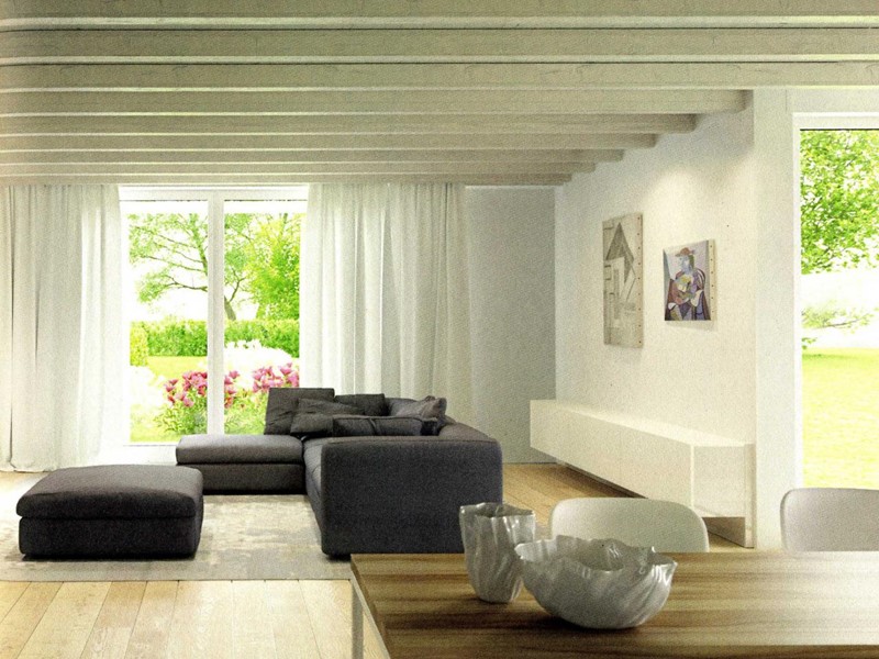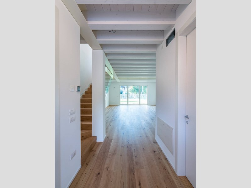 Travi sbiancate in tutta l'abitazione e predisposizione per l'allarme e per l'impianto di domotica.