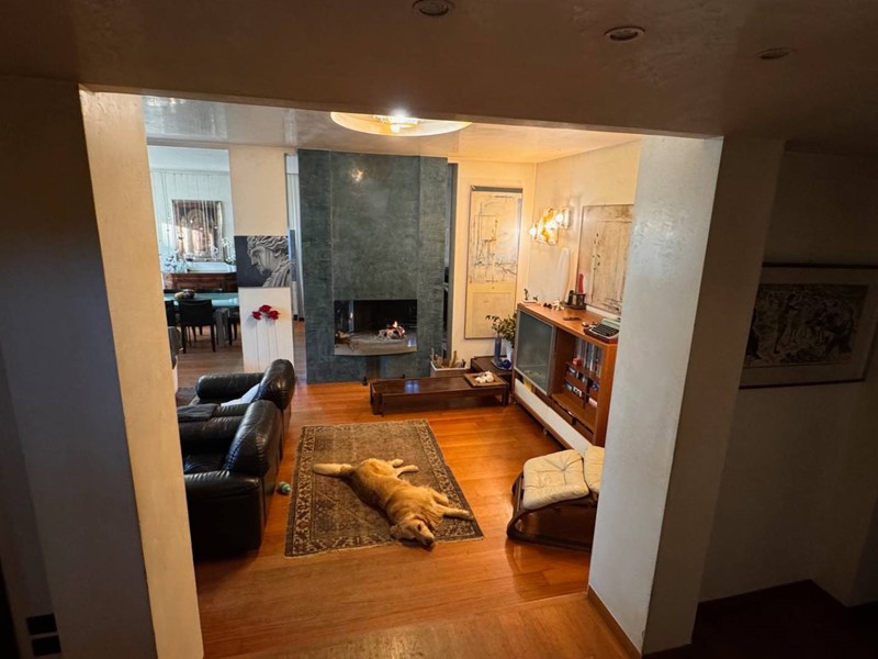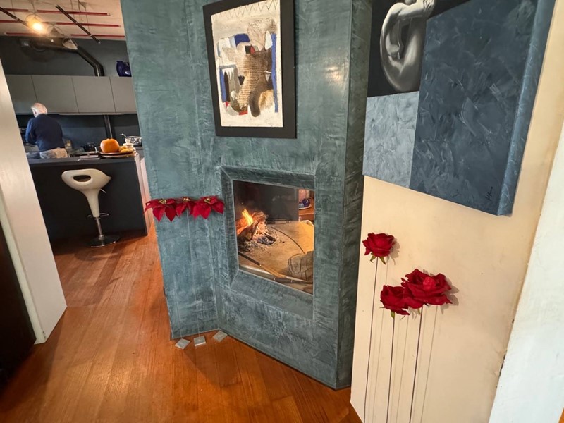 Rimanendo nell'area living la prima cosa che salta agli occhi è il magnifico caminetto, studiato, progettato e costruito affinche fosse visibile in tutti gli ambienti che lo circondano.