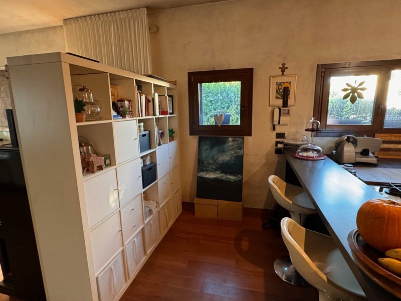 Dall'altra parte dell'ingresso vi è un comodo studio e un disimpegno giorno il cui percorso serve un ripostiglio, una stireria, un bagno dotato di tutto e un magazzino che funge anche da piccola serra.