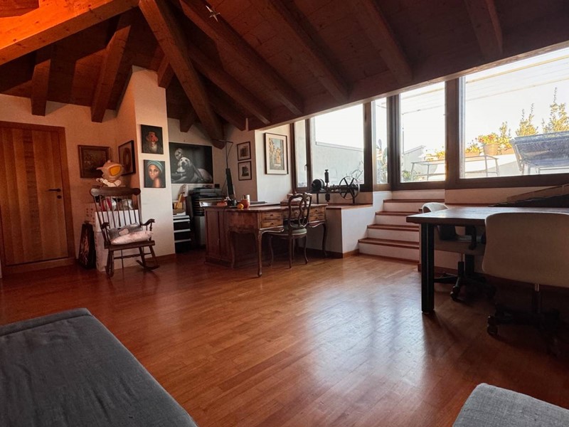 Si sale poi al secondo piano per trovare una deliziosa mansarda dotata di predisposizione idraulica e scarichi per eventuale angolo cottura e ampio terrazzo che fornisce all'ambiente una luce incantevole.