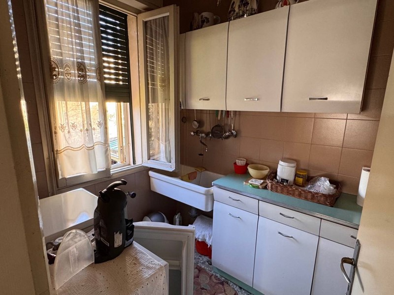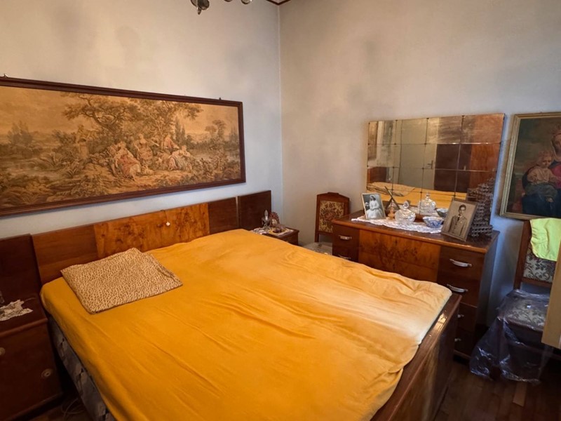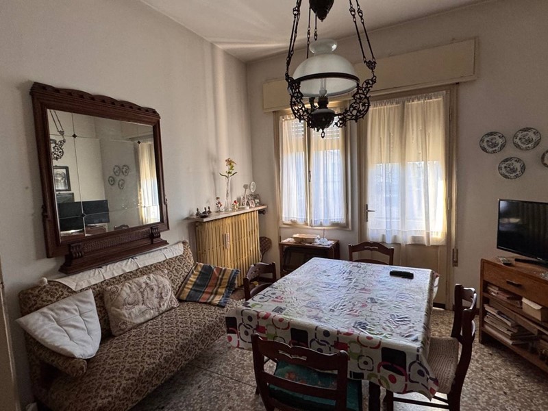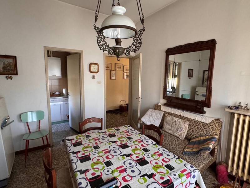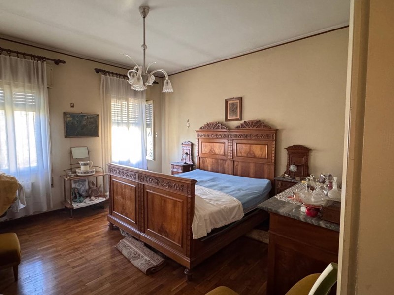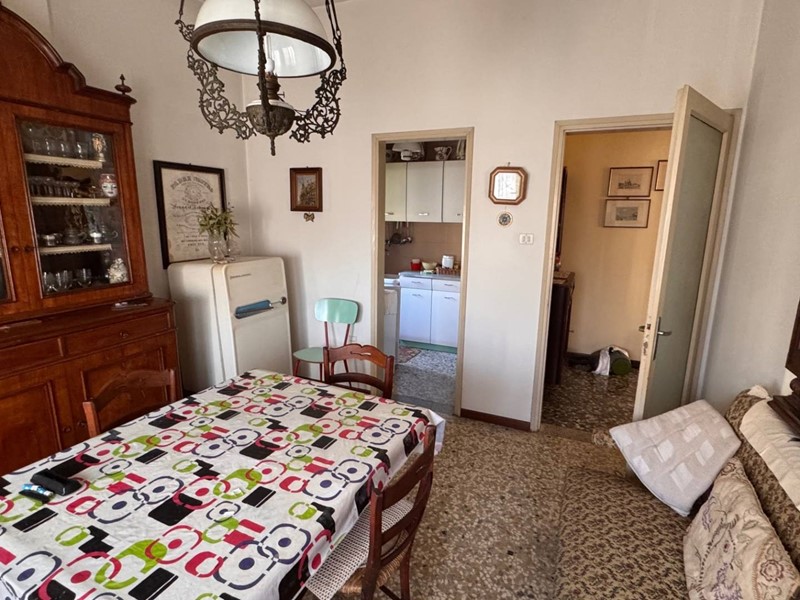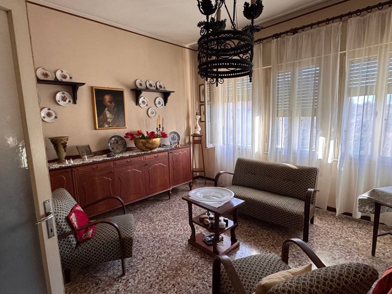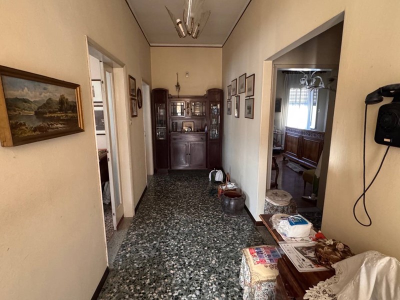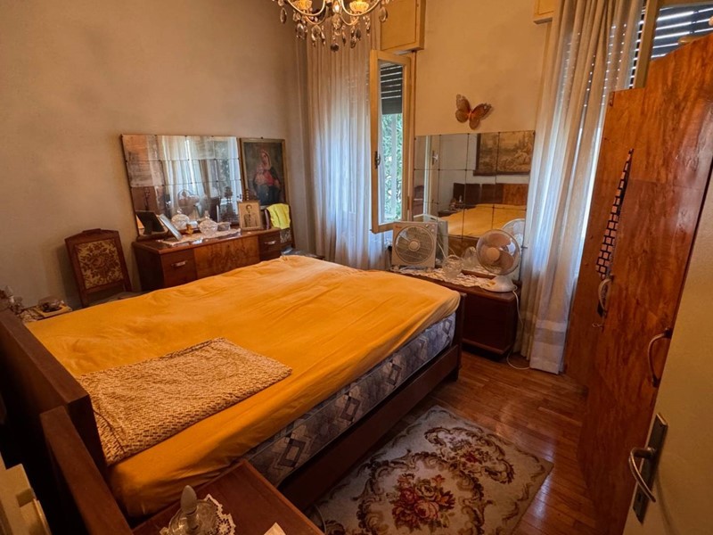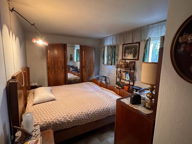 Al primo piano al quale si accede da una scala esterna in tipico stile anni 60, si entra nell'ingresso e disimpegno che porta ad un salotto, un soggiorno pranzo attiguo e adiacente ad uno spazza cucina, due camere matrimoniali ed un bagno.