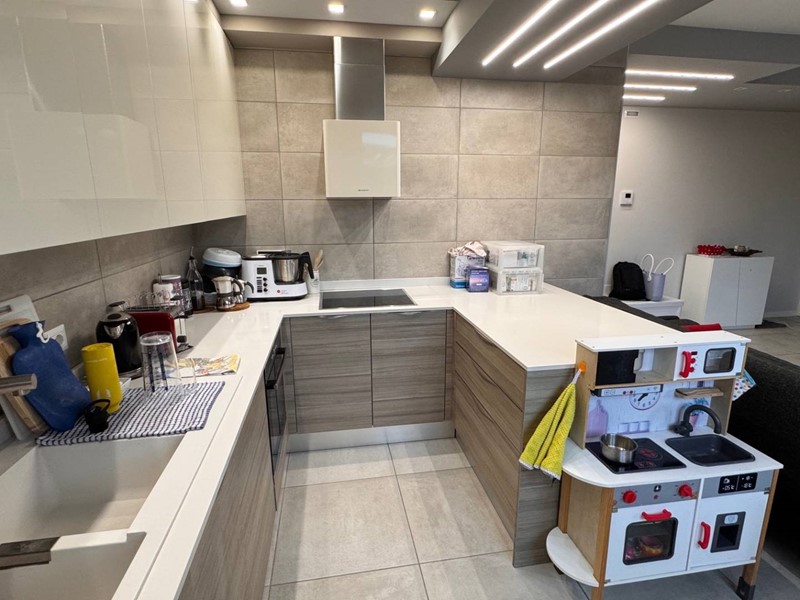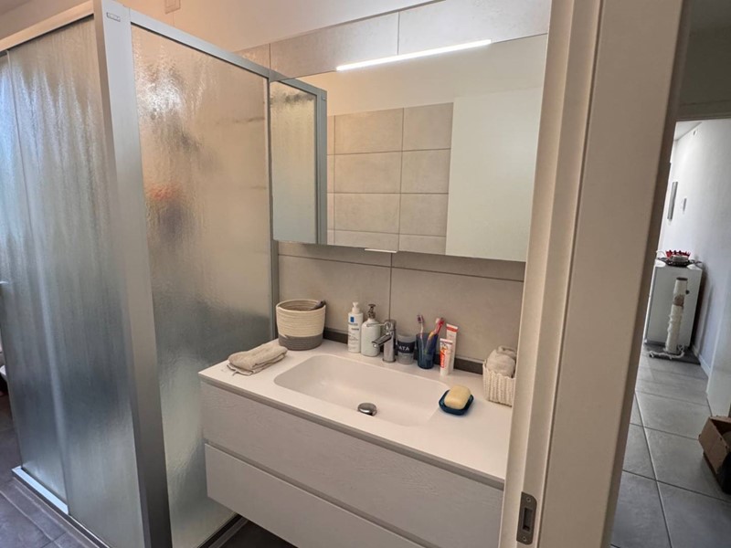 L'immobile si trova al primo piano ed è composto da soggiorno pranzo con balcone, angolo cottura già arredato, disimpegno notte al servizio di due camere da letto di cui una matrimoniale ed una singola e due bagni entrambi finestrati.