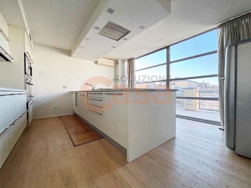 CORSO VITTORIO EMANUELE II - UNICO NEL SUO GENERE DIFFICILE DA REPLICARE - In stabile d'epoca sapientemente ristrutturato con ascensore LUMINOSO E MODERNO LOFT CON TERRAZZA E VETRATE posto all'ultimo piano con affaccio sui tetti del centro. L'appartamento disposto su due livelli per complessivi 273 mq, è molto luminoso grazie alle pareti vetrate su entrambi i livelli ed è impreziosito da una leggera scala in vetro di design. L'ingresso, ampio e accogliente in grande zona living completamente aperta con altezza tutto tetto, conduce agli ambienti principali dell'abitazione ed alla cucina abitabile con isola arredata con accesso diretto alla terrazza. Sempre al piano una grande camera da letto matrimoniale con possibilità di realizzare cabina armadi, un dressing di disimpegno, un bagno ed una lavanderia. Al piano superiore, oltre alla passerella con affaccio sulla zona living, troviamo ulteriori 2 camere da letto, oltre al secondo bagno. Bellissimi pavimenti in listoni di parquet in perfette condizioni con impianti tecnologici nuovi e riscaldamento a pavimento e aria condizionata. Cantina e POSSIBILITA' DI POSTO AUTO presso silo Ex Plaza ad Euro 45.000, oppure garage singoli o doppi in Via Venturini a partire da Euro 28.000, oppure posto auto in locazione presso garage Politeama, o possibilità posto auto presso Garage del Corso ad Euro 2.000 annui.