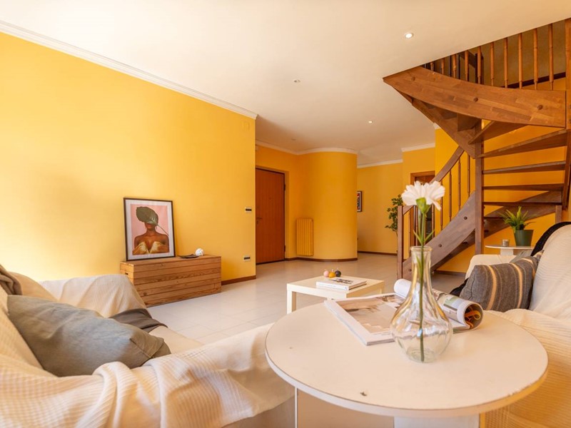 "Francavilla dal gentile profilo moresco, candida, in una gloria di sole, intarsiata sul fondo azzurro del cielo. " Così Gabriele D'Annunzio scriveva di Francavilla al Mare e proprio in Francavilla e' sito l'immobile di cui vogliamo parlarvi. Siamo nella residenziale via Tommaso Bruni, per la precisione al numero 32, e vogliamo proporvi un interessante compendio immobiliare all'interno di una villetta bifamiliare. Un ingresso carrabile ed uno pedonale ci conducono allo spazio antistante l'immobile, che continua anche sul lato della casa. Ad oggi è lastricato e viene usato dall'attuale proprietà per parcheggiare le auto, ma nessuno vieta che possa essere trasformato in giardino. Salendo le scale giungiamo al secondo piano ed entriamo in casa. L'appartamento, disposto su due livelli, e' molto ampio ed è perfetto per una famiglia numerosa. Un luminoso soggiorno ed una cucina abitabile, percorsi da un ampio balcone, e una sala da pranzo compongono la zona giorno; due camere, anch'esse dotate di balcone e due bagni la zona notte. Ma l'appartamento non finisce qui. Salendo l'elegante scala in legno posta nel salotto, accediamo al secondo piano mansardato dove un secondo soggiorno, dotato anche di camino, ci aspetta per garantirci bellissime serate, perché no, anche osservando le stelle dalla bella velux che di giorno invece regala tanta luce. Un ampio bagno completo ed una camera da letto matrimoniale completano il secondo piano. Ma c'è una piccola sorpresa: nella camera matrimoniale, nascosta da una bellissima parete a specchi, si cela una grandissima cabina armadio che, ammettiamolo, è uno dei sogni di ognuno di noi. Ritornando al piano terra, però, avrete notato dalle foto che è presente anche la porta di un box. Beh adesso non c'è più, perché è stata ricavata una bella taverna finestrata completa anche di cucina, ripostiglio e bagno. Già vi immaginate seduti fuori per delle belle cene estive o a festeggiare i compleanni dei vostri figli con tutti gli altri bambini, vero? Se poi vi sembra di troppo, beh, essendo dotata di ingresso indipendente, può essere sempre affittata durante la stagione estiva.
