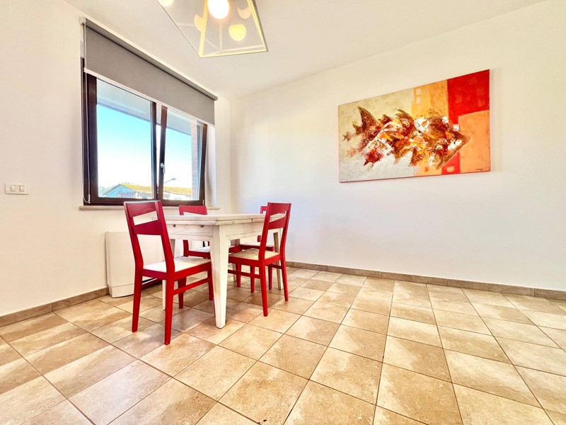 Questo appartamento di 74 m² commerciali è situato al primo ed ultimo piano di un edificio moderno con accesso da scala esterna.