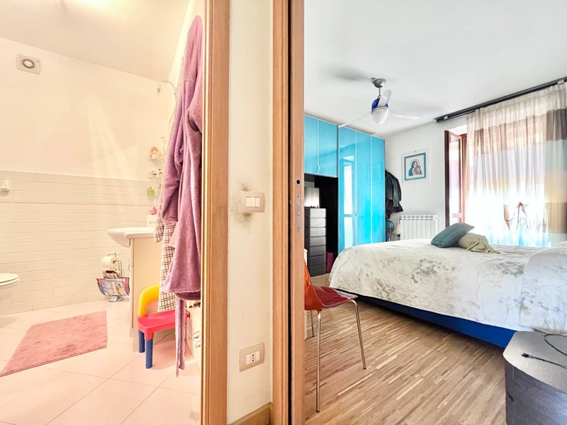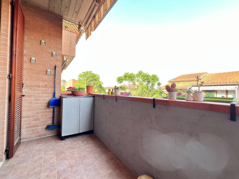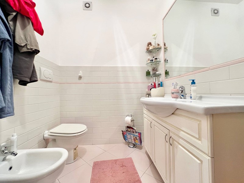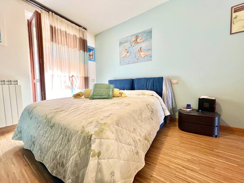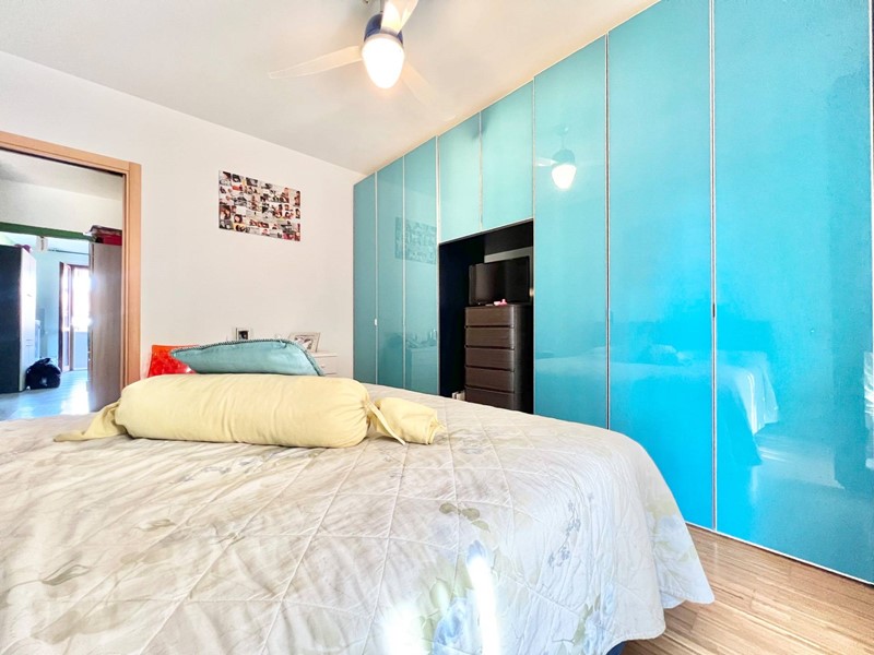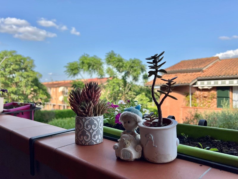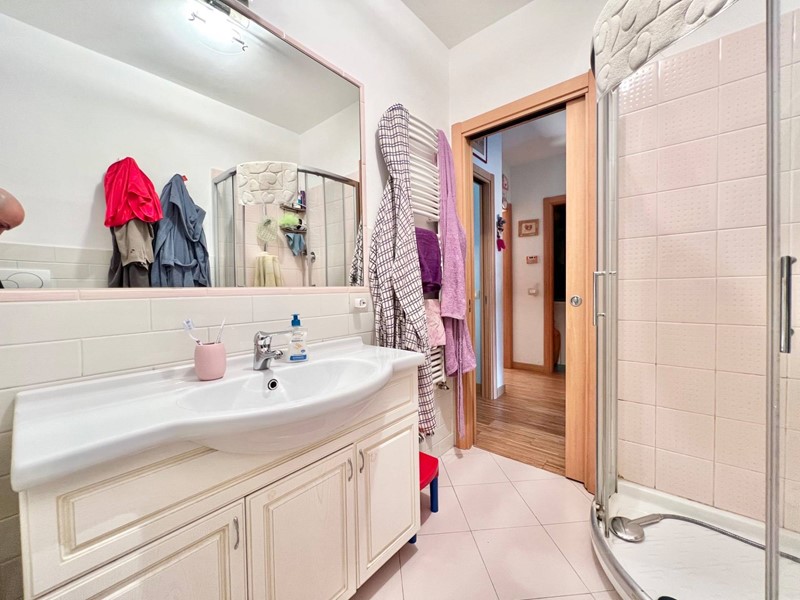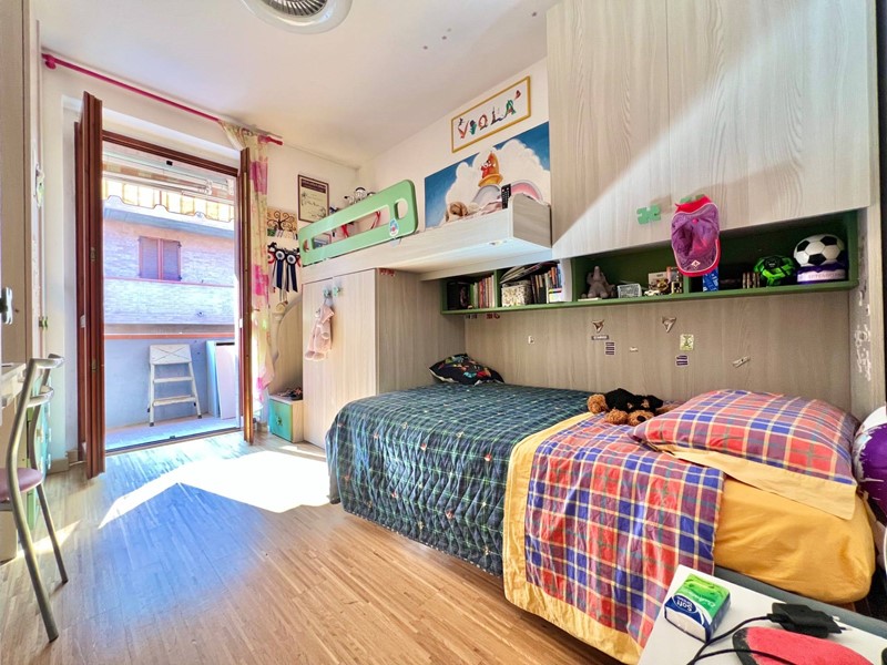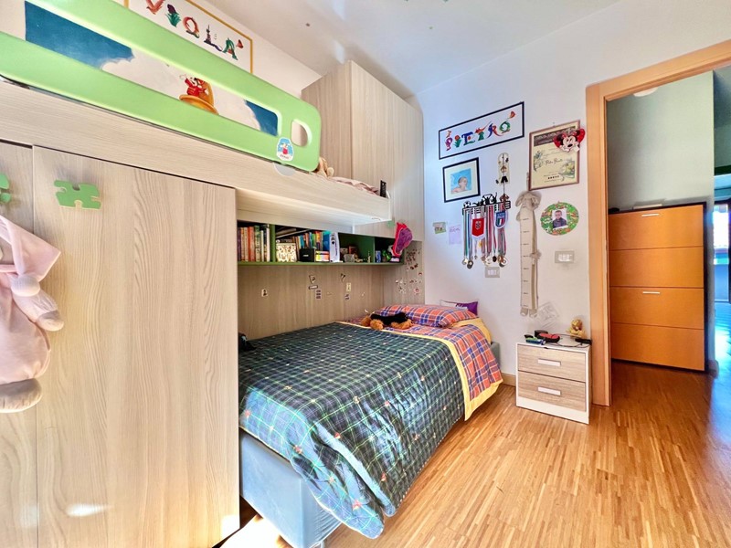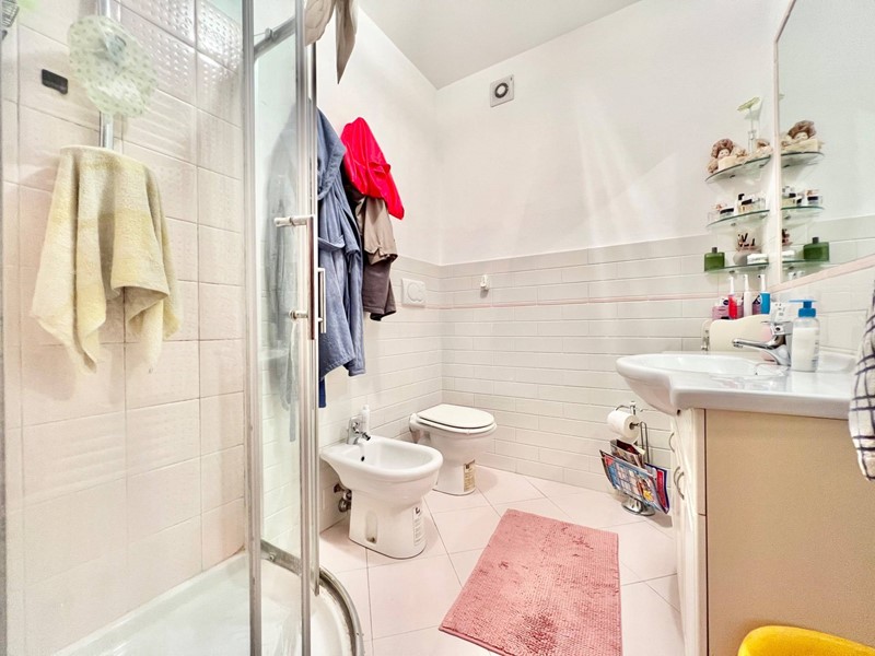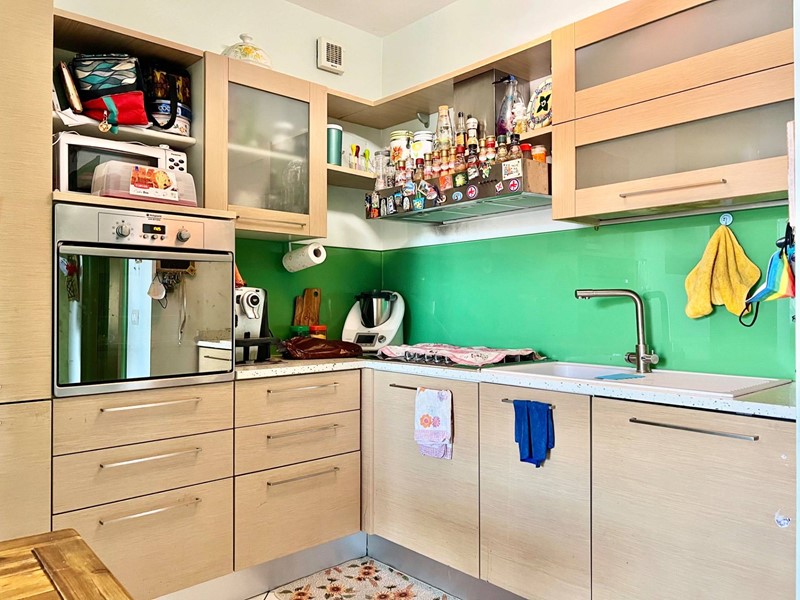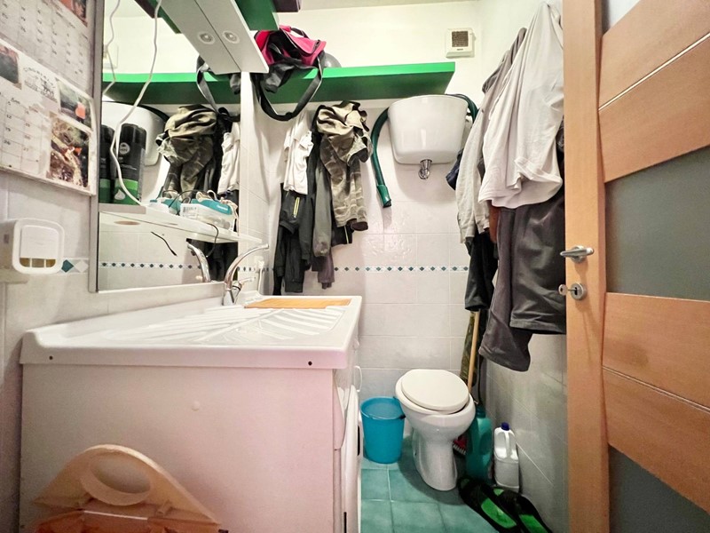 Limmobile si compone di un soggiorno molto luminoso con angolo cottura e accesso al balcone, una camera matrimoniale, una camera singola (entrambe con accesso a un secondo balcone), un primo bagno cieco con doccia, disimpegno con armadio a muro e dove è situata al suo interno anche la caldaia, secondo bagno cieco di servizio adibito a zona lavanderia.