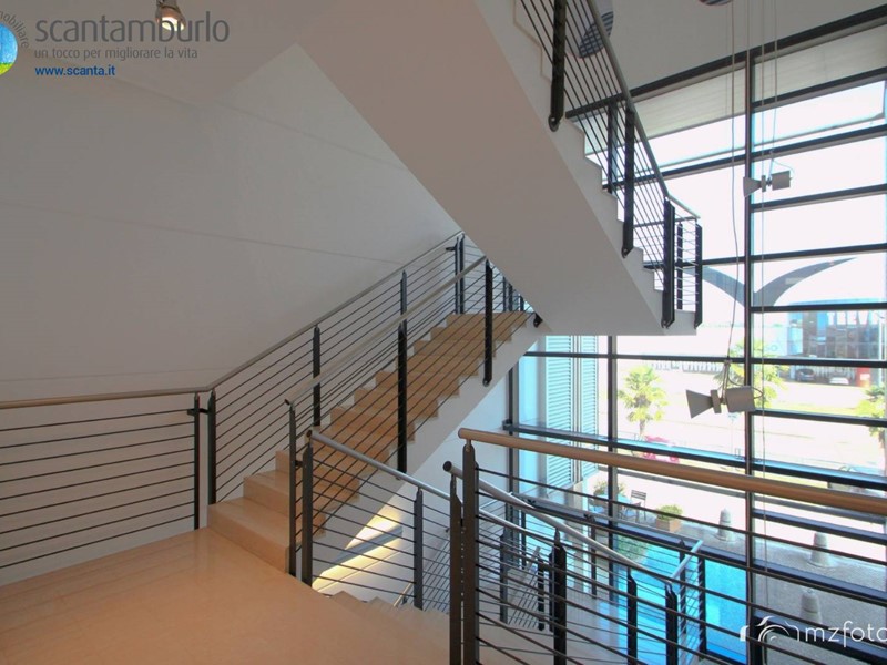 Unità n.8 mq 155 + unità n.7 mq 183. Su complesso fronte strada commerciale-direzionale, difronte ipermercato Alì Aeroporto, con ampio parcheggio, vendesi negozio-ufficio piano primo con ascensore open space di mq. 338, pavimento galleggiante (portata 700 kg/mq), altezza 3,02-3.42, bagni a norma per persone diversamente abili, attacco lavatrice, frangisole elettriche esterne, predisposizione aria condizionata, più n.8 posti auto mq 100 coperti nell'interrato. Possibilità doccia, attacco cucina, canna fumaria. L'immobile è adatto a molteplici attività in base alle proprie esigenze. Acquirente-Ditta Reverse Charge, Acquirente-Privato esente iva. Disponibili altri immobili nel nostro sito www.scanta.it e in agenzia.