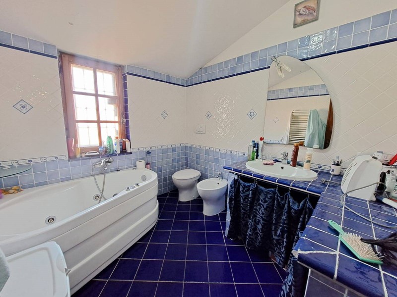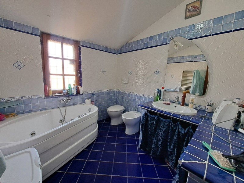 Salendo al primo piano, si accede alla zona notte, composta da una camera matrimoniale, una camera media e una cameretta. Sia la camera matrimoniale che la cameretta dispongono di un balcone privato, mentre la cameretta e la camera media godono di una vista sul mare, regalando un panorama suggestivo e rilassante. Il bagno del piano superiore è spazioso e ben rifinito ed è dotato di vasca idromassaggio.