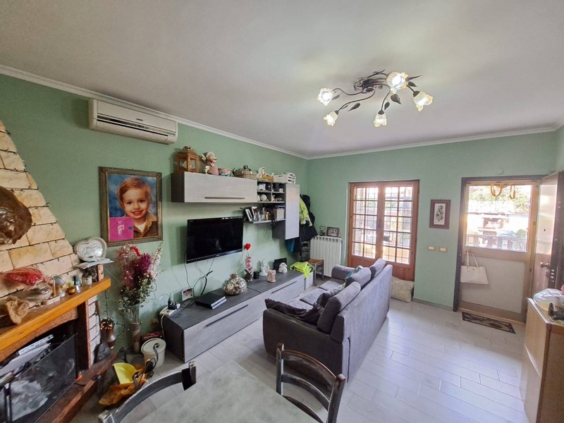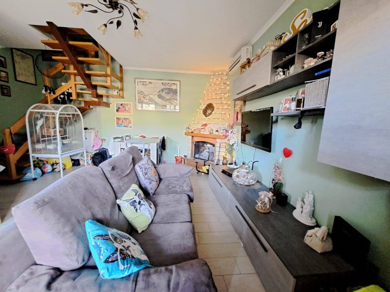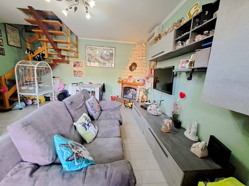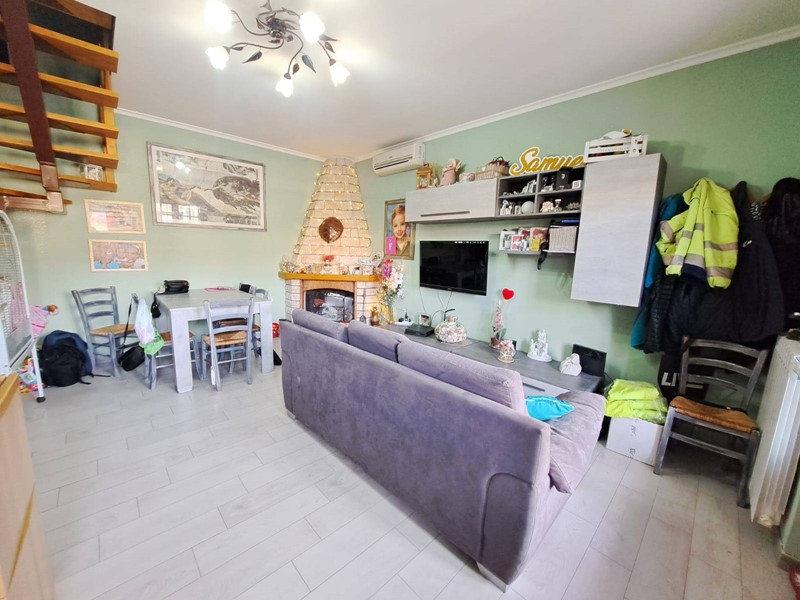 Allinterno, il piano terra è composto da un luminoso soggiorno con camino, che crea unatmosfera calda e accogliente. Adiacente al soggiorno si trova il cucinotto, funzionale e ben organizzato, separato per garantire ordine e praticità. Sempre al piano terra è presente un bagno di servizio.